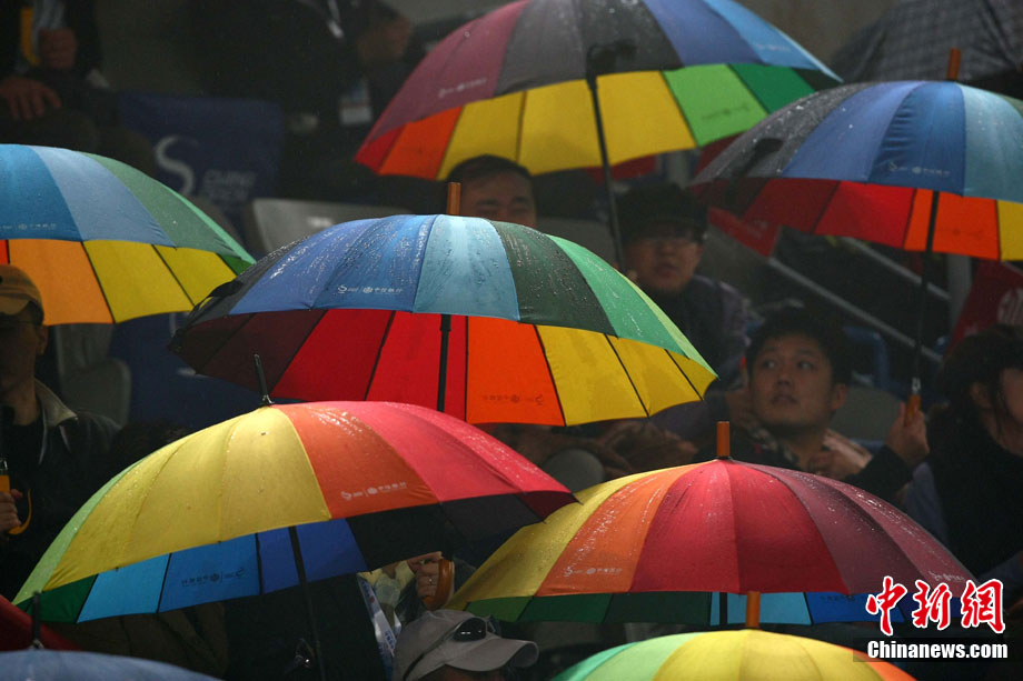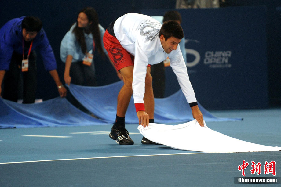 10月10日,總獎(jiǎng)金額為210萬美元的ATP'500中網(wǎng)公開賽進(jìn)入最后一天的爭奪,衛(wèi)冕冠軍德約科維奇與西班牙名將費(fèi)雷爾之間的男單決賽因雨中斷,比賽暫停時(shí)小德以3-1的比分暫時(shí)領(lǐng)先。中新社記者 富田 攝