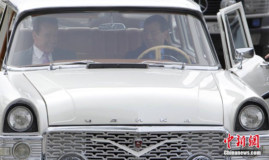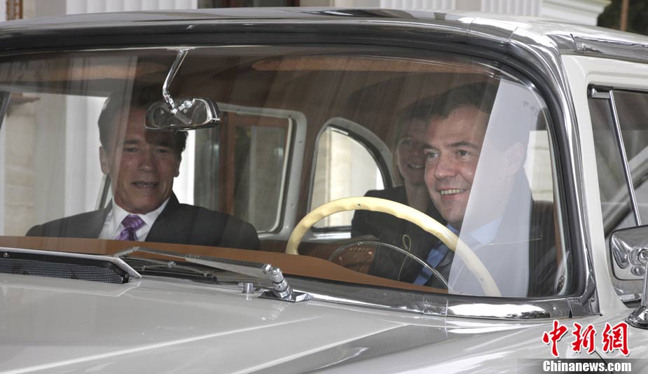俄總統(tǒng)與施瓦辛格會(huì)面 為“硬漢”當(dāng)司機(jī)