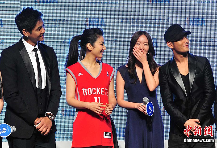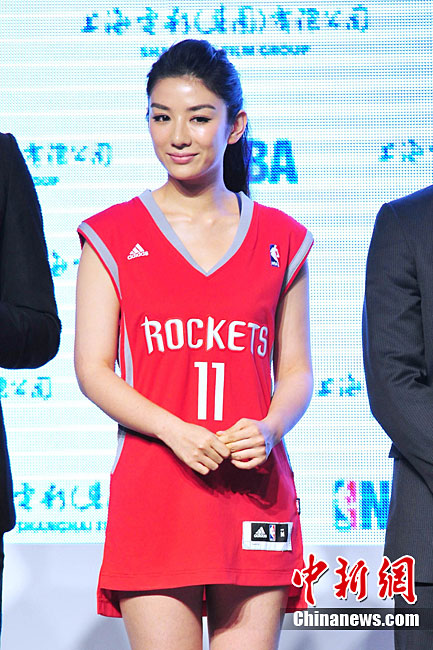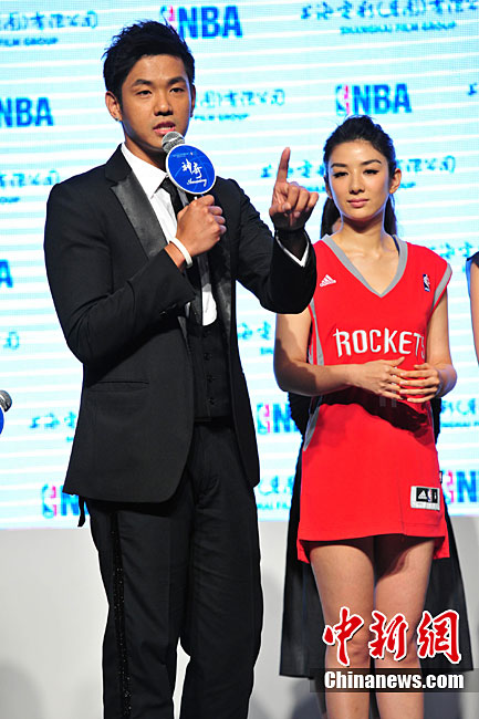 10月12日,上海電影集團聯(lián)手美國職業(yè)籃球協(xié)會(NBA)在京召開發(fā)布會,共同揭曉首部本土制作的NBA題材電影《神奇Amazing》的全明星陣容,六屆NBA冠軍得主科特·皮蓬、中國著名籃球明星易建聯(lián)、NBA全明星球員效力于奧蘭多魔術(shù)隊的德懷特·霍華德、丹佛掘金隊的卡梅羅·安東尼、現(xiàn)中國男子籃球隊球員王治郅等多名籃球明星,以及來自兩岸三地的人氣明星黃曉明、馮德倫、陳建州(黑人)、黃奕,以及韓國女星金雅中,美國男星埃里克·馬布斯將聯(lián)手出演影片。圖為在片中飾演拉拉隊長的黃奕身著鮮紅色火箭隊姚明11號球衣驚艷亮相。中新社記者 李學(xué)仕 攝