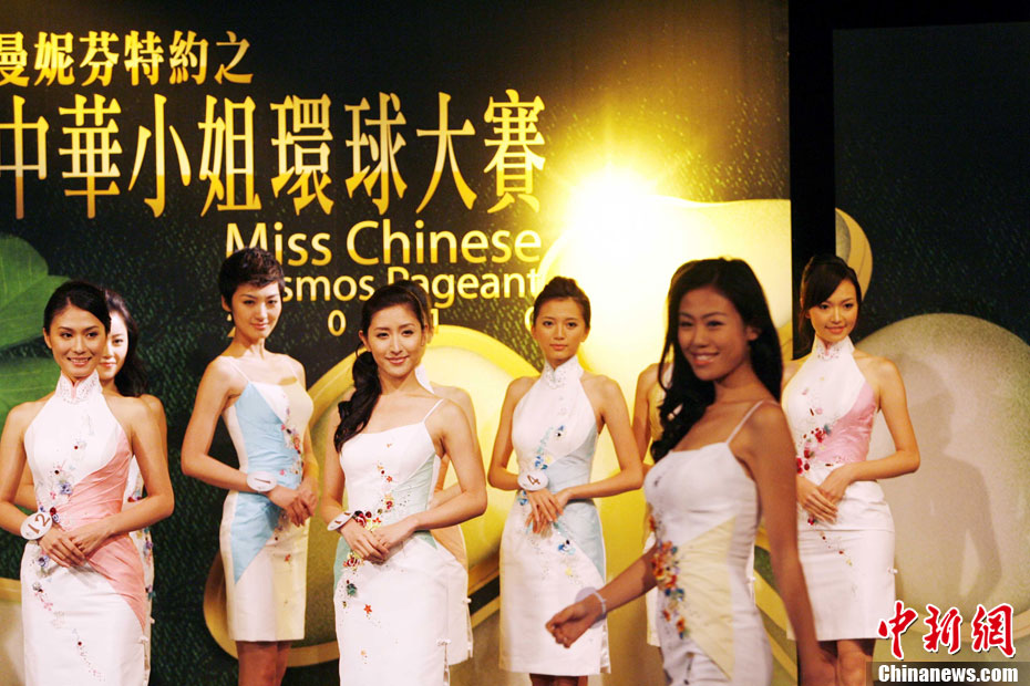 參加“2010中華小姐環(huán)球大賽”的12名入選佳麗,10月13日在香港鳳凰衛(wèi)視亮相。剛剛結(jié)束在澳洲的“綠色之旅”外景拍攝后,佳麗們蓄勢待發(fā)準備角逐10月23日晚的總決賽。中新社發(fā) 洪少葵 攝