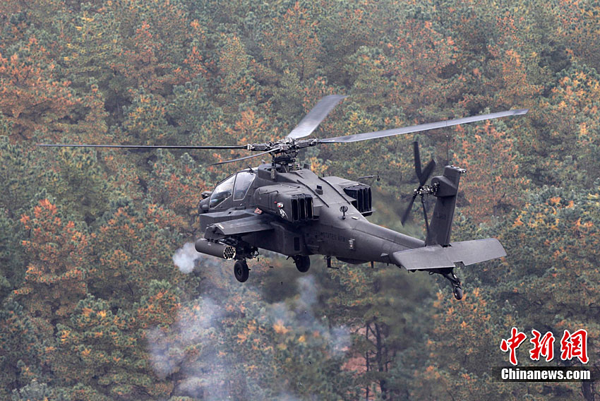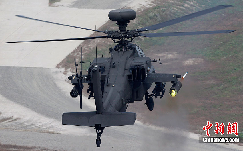 當(dāng)?shù)貢r(shí)間10月13日,韓國在釜山附近海域開始為期兩天的防擴(kuò)散聯(lián)合演習(xí)。此次演習(xí)由韓國軍隊(duì)主導(dǎo),美國、日本等15個(gè)國家參加。其中,韓國、美國、日本、澳大利亞參與海上攔截演習(xí)。韓軍出動(dòng)兩艘韓國型驅(qū)逐艦、兩艘登陸艦等艦艇。美國宙斯盾驅(qū)逐艦、日本4000噸級(jí)驅(qū)逐艦、澳大利亞P-3C巡邏機(jī)等參演。圖為10月13日,美國AH-64武裝直升機(jī)在韓國抱川進(jìn)行防擴(kuò)散聯(lián)合演習(xí)中進(jìn)行射擊。