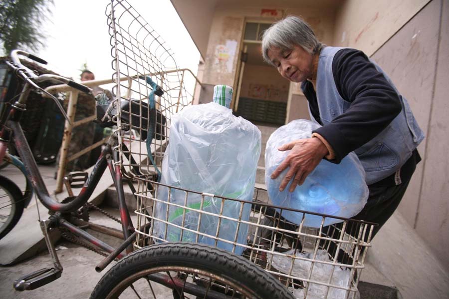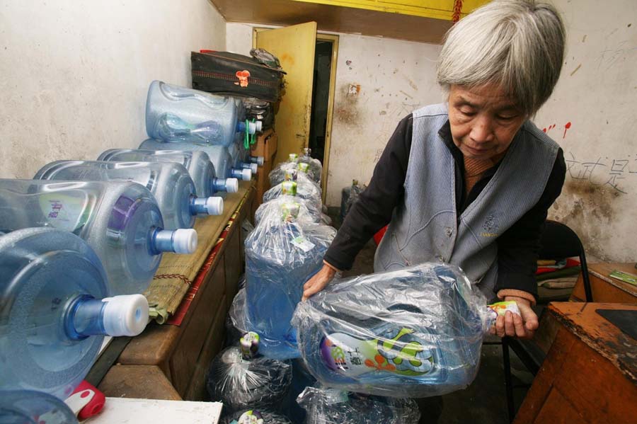 每天早晚都是送水高峰,不論是早上6點(diǎn)還是晚上10點(diǎn),不論刮風(fēng)下雨,只要顧客一個(gè)電話,老人便會(huì)送水上門。長(zhǎng)時(shí)間的搬運(yùn),導(dǎo)致她的背駝得十分嚴(yán)重。老人寫信委托本報(bào)尋求好心人的救助,幫自己的兒孫治病,渡過難關(guān)。王璐 攝/林暉 圖片來源:新華網(wǎng)
