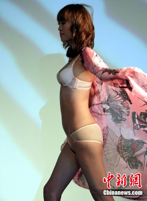 10月21日,中國某女性內(nèi)衣品牌在上海舉行2011春夏新品發(fā)布會,率先推出“自在·零負(fù)擔(dān)”內(nèi)衣,讓女性在即將到來的兔年中體驗(yàn)“身體不受束縛,心靈自由放逸”的逍遙境界。 中新社記者 潘索菲 攝