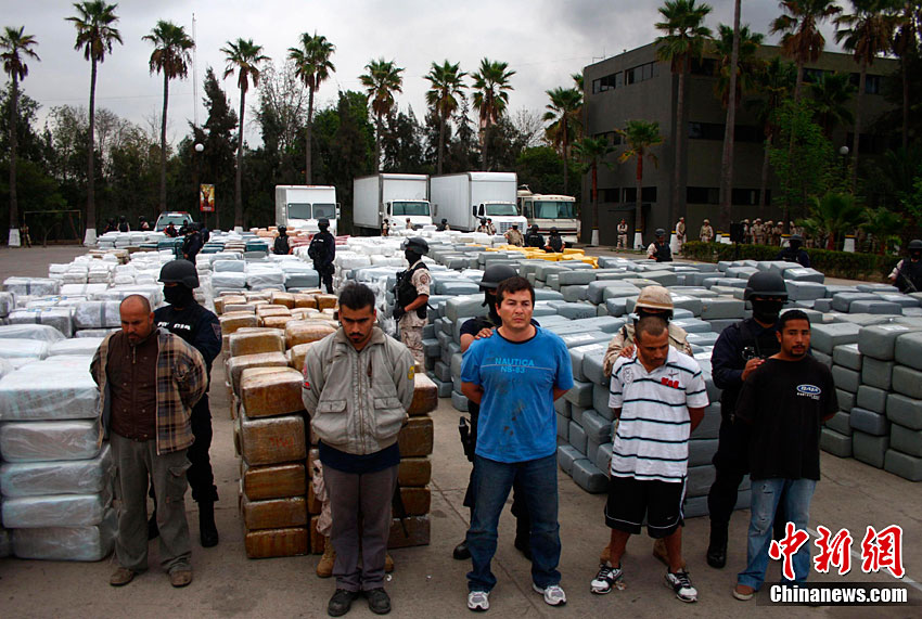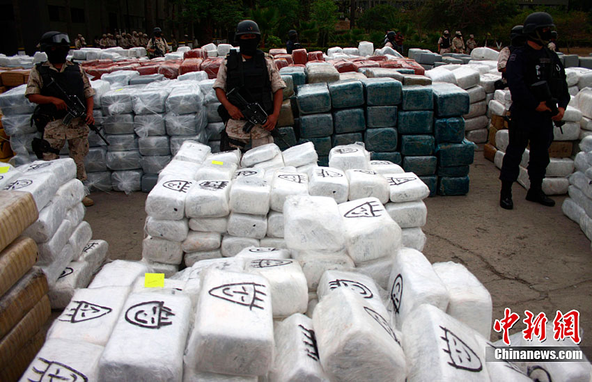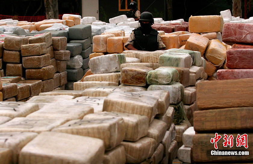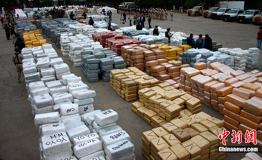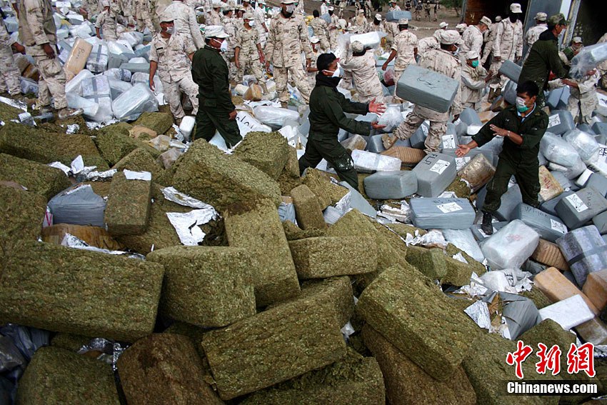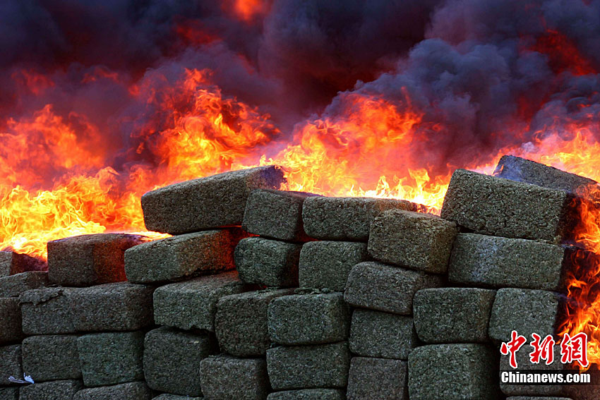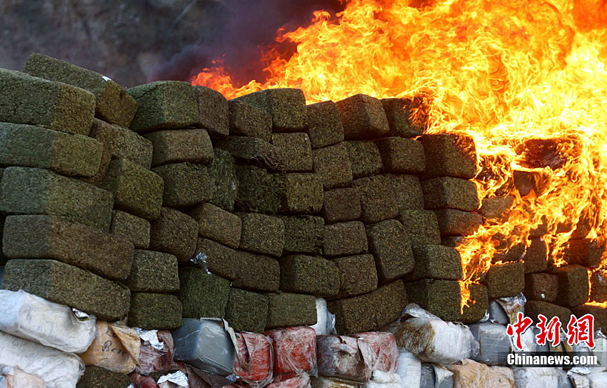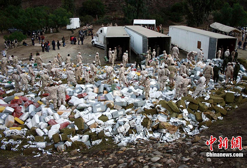 當(dāng)?shù)貢r間10月20日,墨西哥在北部邊境城市蒂華納的一個軍營內(nèi)集中銷毀了在北部邊境繳獲的134噸大麻。