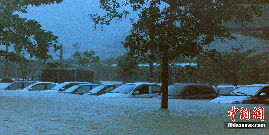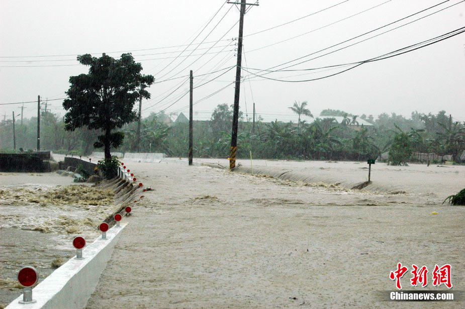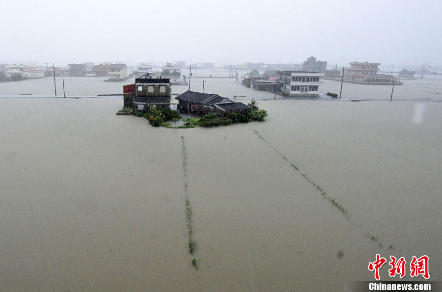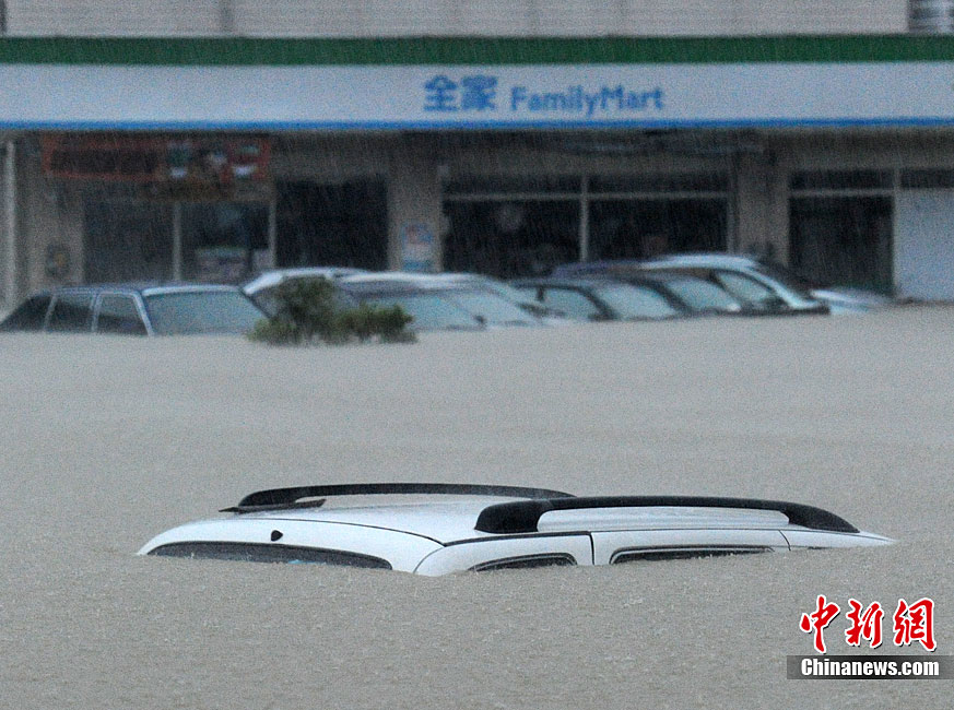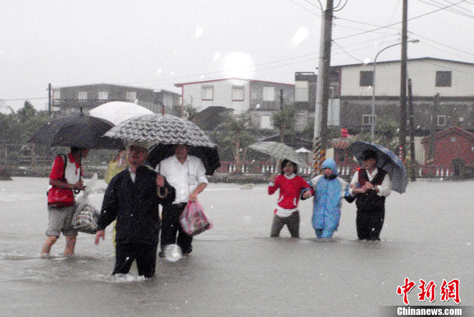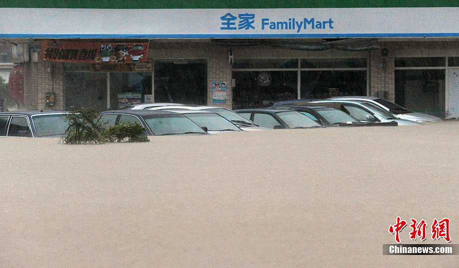 10月21日,受臺(tái)風(fēng)“梅姬”(大陸稱“鲇魚”)影響,臺(tái)灣宜蘭縣冬山鄉(xiāng)中山村豪雨不斷,當(dāng)?shù)貎?nèi)湖路嚴(yán)重積水,積水最深處有半人高。 中新社發(fā) CNA 攝 圖片來源:CNSPHOTO