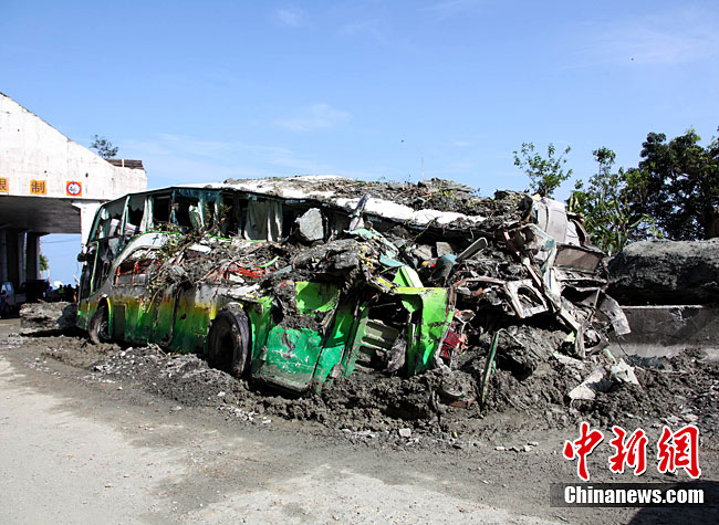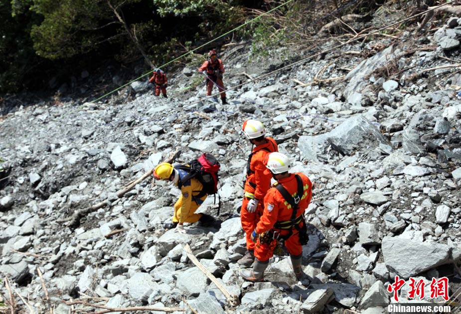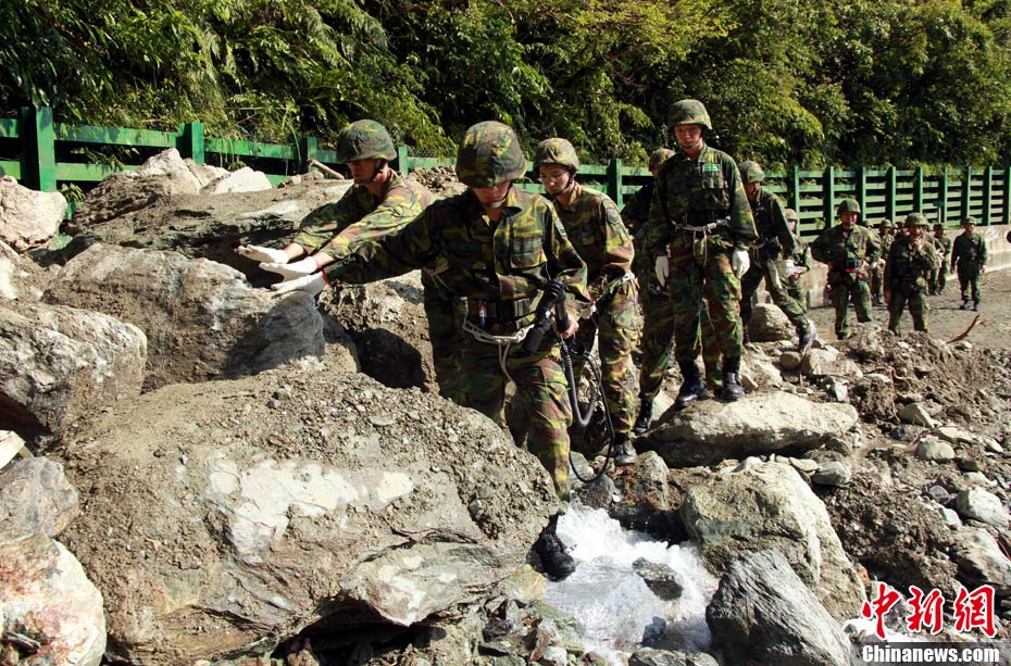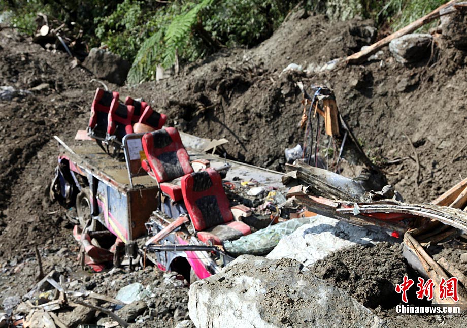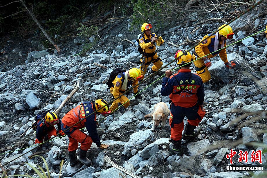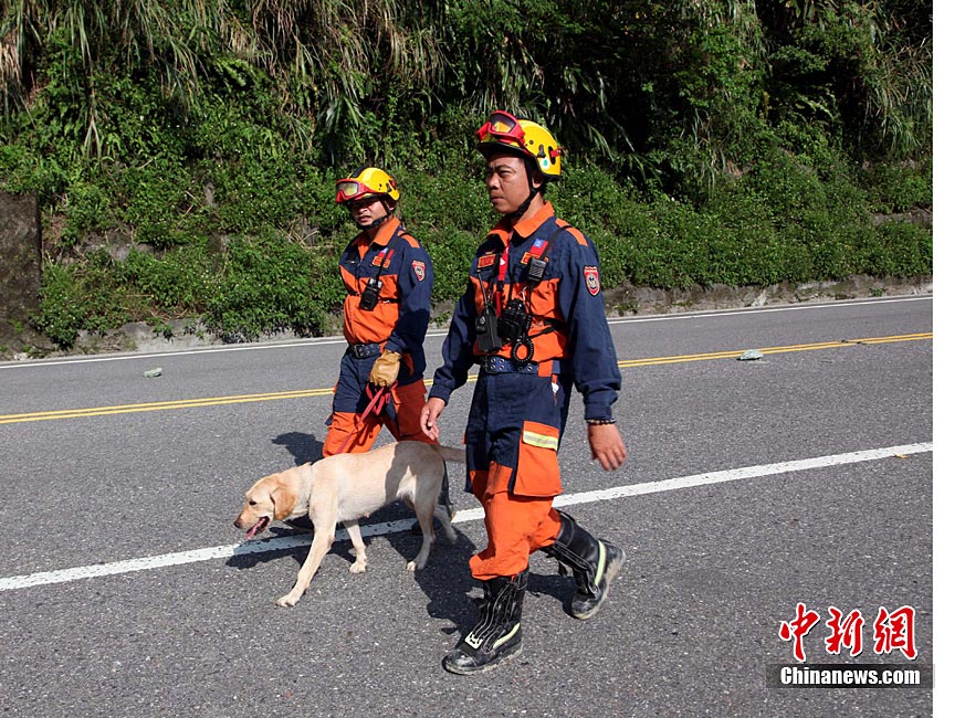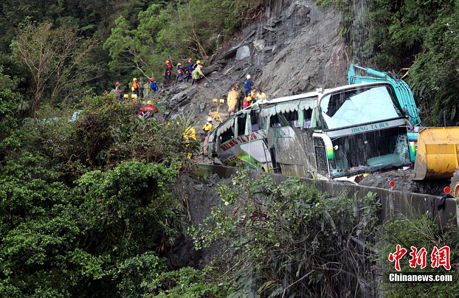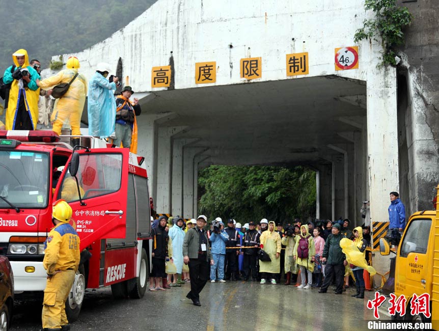 10月22日,21日因受豪雨引起的塌方困在臺灣蘇花公路的200多名大陸游客,今天有部分已脫險。圖為從蘇花公路陸路救援現(xiàn)場脫險的大陸游客團。中新社記者 陳立宇 攝