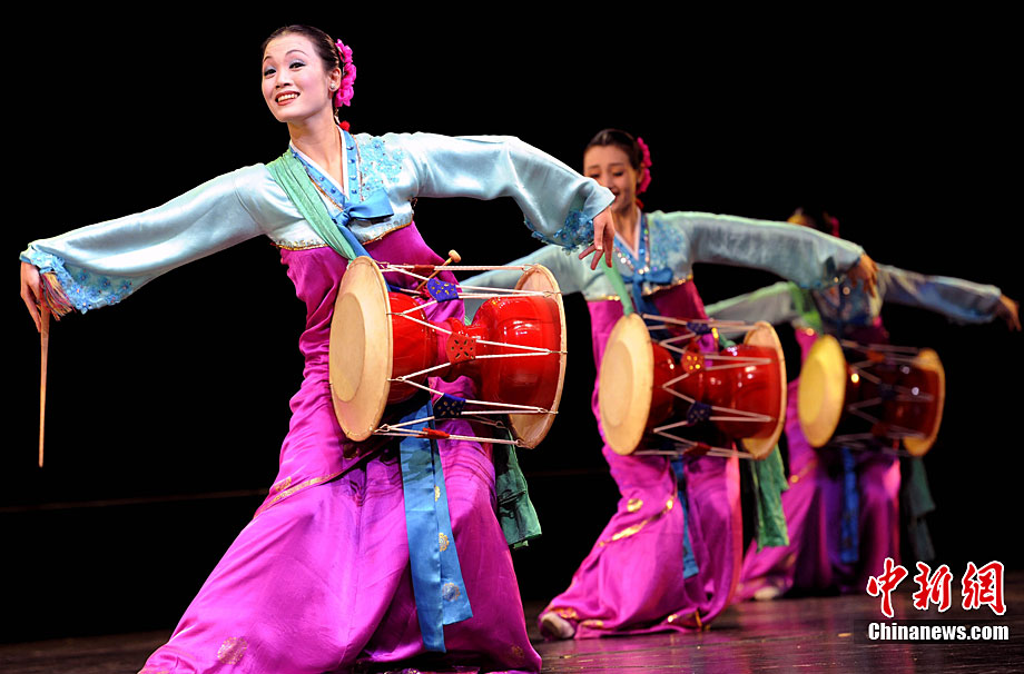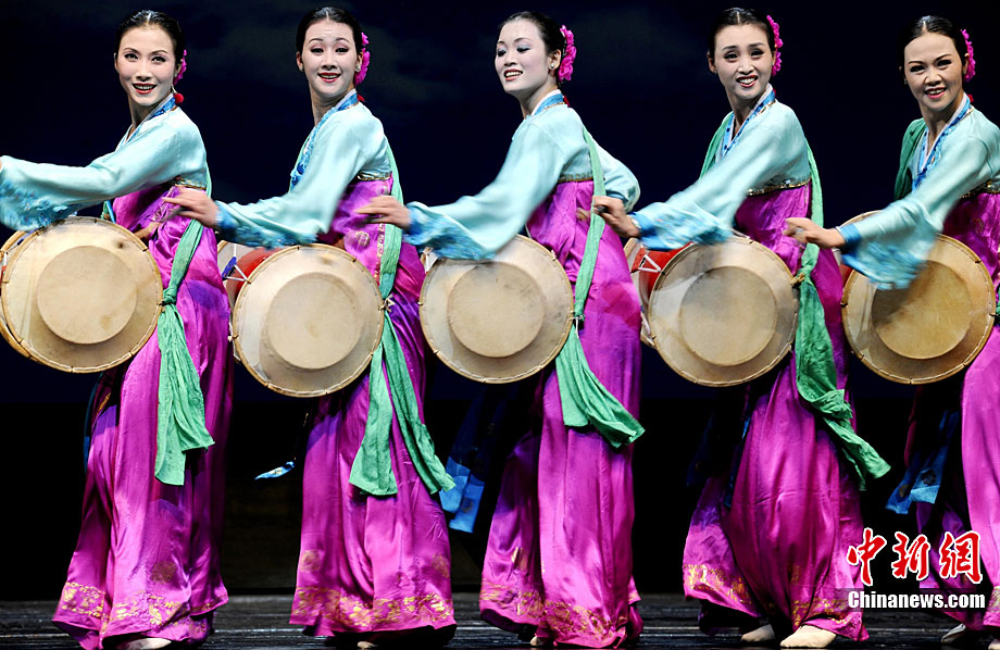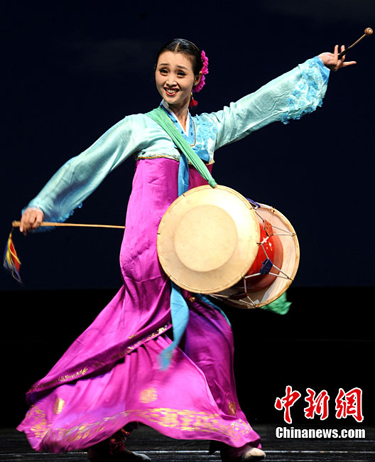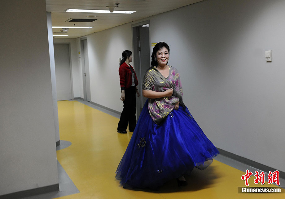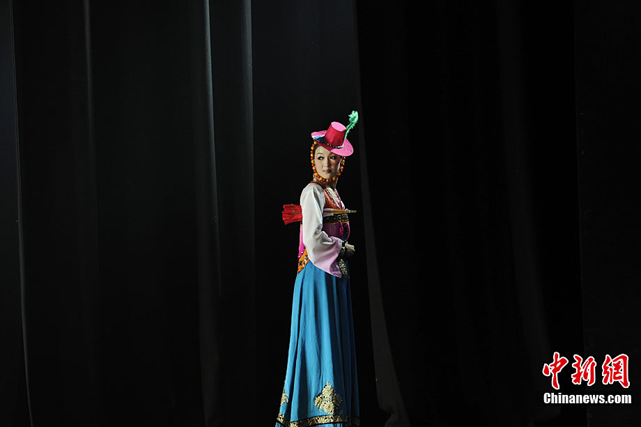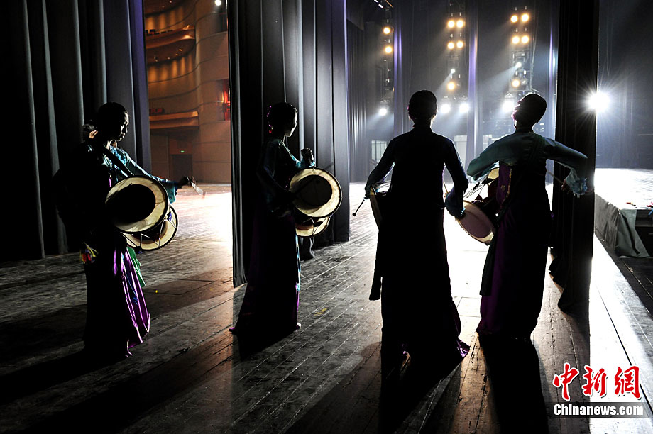 10月22日晚,朝鮮平壤藝術(shù)團(tuán)在國(guó)家大劇院進(jìn)行彩排。10月23至24日,朝鮮平壤藝術(shù)團(tuán)將在北京國(guó)家大劇院歌劇院上演歌舞晚會(huì)《怒放的金達(dá)萊》。此次來訪的朝鮮平壤藝術(shù)團(tuán),是朝鮮政府專門為參加上海世博會(huì)朝鮮館日組建的表演團(tuán)體,該團(tuán)成員來自朝鮮最重要的三大藝術(shù)團(tuán)體:萬壽臺(tái)藝術(shù)團(tuán)、血海藝術(shù)團(tuán)和朝鮮民族國(guó)立藝術(shù)團(tuán),參演人員薈萃了朝鮮最優(yōu)秀的藝術(shù)家。演員們將身著獨(dú)具特色的民族服飾,表演《長(zhǎng)鼓舞》、《拾貝姑娘》、《鈴鐺舞》、《三人舞》等傳統(tǒng)舞蹈。中新社記者 劉震 攝