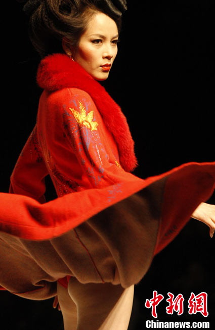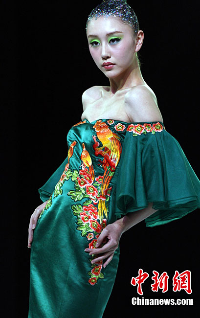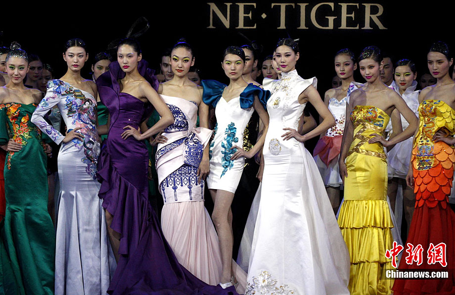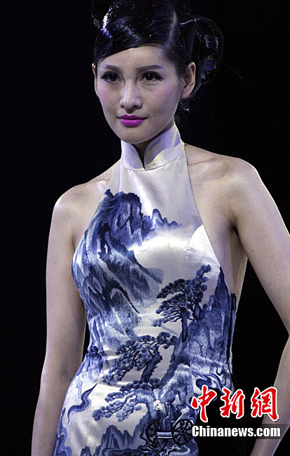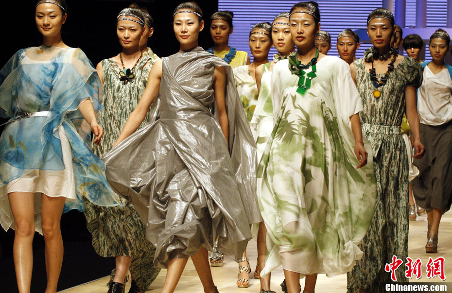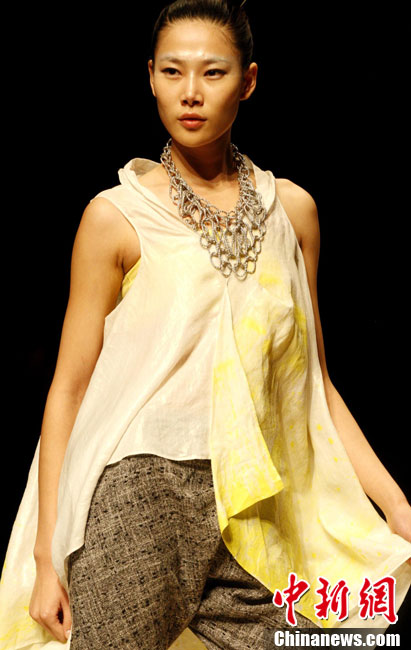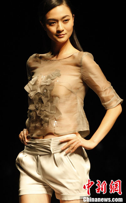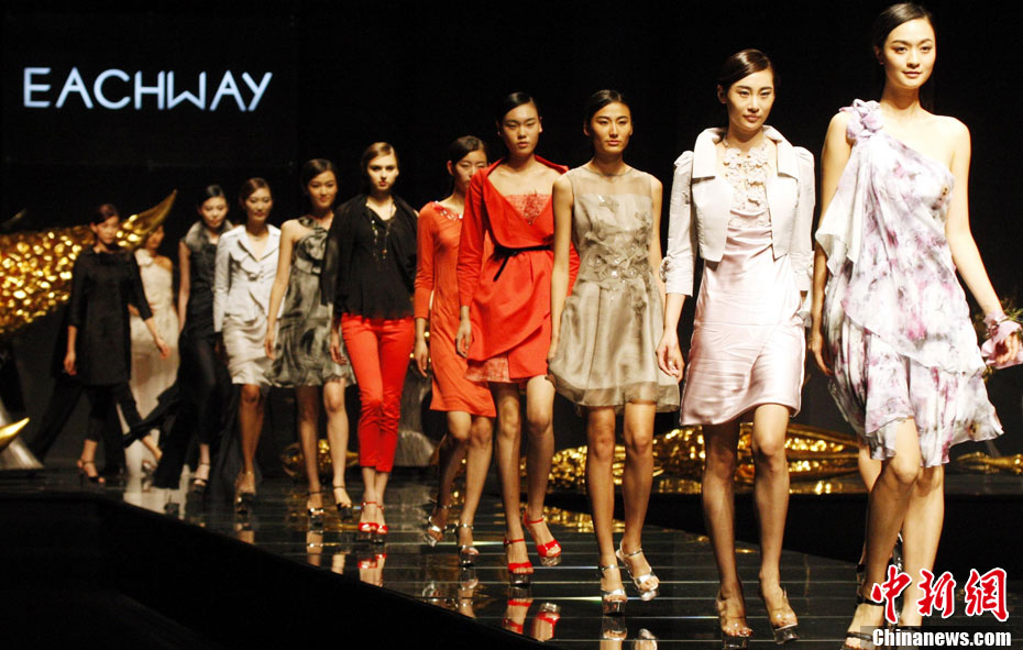 10月26日晚,正在北京舉行的中國國際時裝周上演EACHWAY·趙卉洲2011春夏時裝發(fā)布會,該作品風(fēng)格簡約自然、清新優(yōu)雅、大氣內(nèi)斂,贏得眾多職場女性的青睞。2011春夏系列包含三大主題:“深海精靈”(藍綠色系)、“夢游幻境”(粉紫色系)、“雙色游戲”(米咖色系),圍繞摩登柔美和經(jīng)典的花卉印花兩大元素展開。中新社記者 錢興強 攝