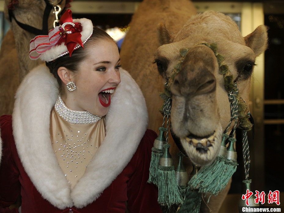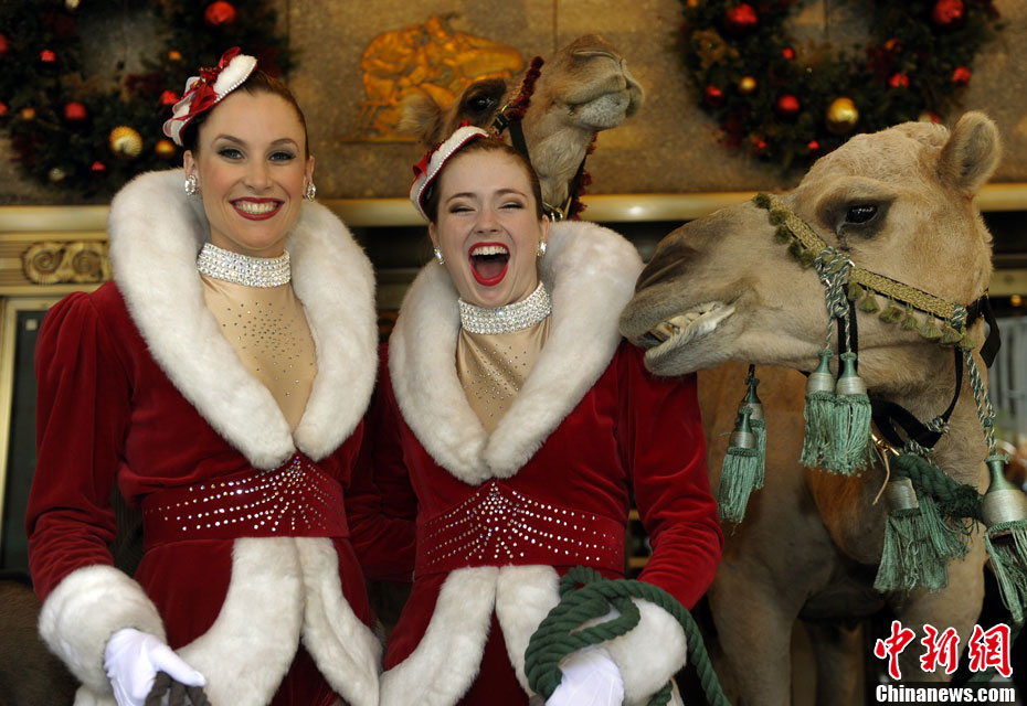 10月26日,美國(guó)“火箭女郎”舞蹈團(tuán)攜駱駝、綿羊等動(dòng)物一起出現(xiàn)在紐約無(wú)線(xiàn)電城前,為即將到來(lái)的圣誕大匯演造勢(shì)。今年的無(wú)線(xiàn)電城圣誕大匯演將于11月5日至12月30日舉行。