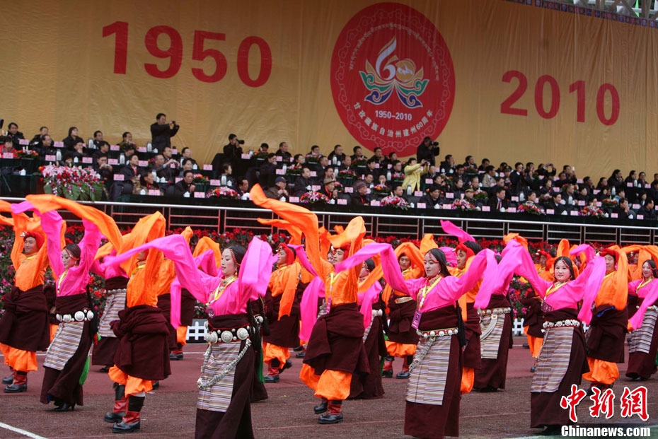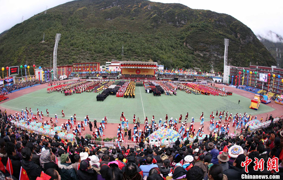 10月27日,四川甘孜藏族自治州舉行慶典活動(dòng)慶祝建州60周年。甘孜藏族自治州成立于1950年11月24日,是新中國成立后建立的第一個(gè)專區(qū)級(jí)少數(shù)民族自治州。甘孜位于四川省西部,青藏高原東南緣,地處川、滇、藏、青交界處,轄18個(gè)縣,325個(gè)鄉(xiāng)(鎮(zhèn)),總?cè)丝?02萬,藏族人口占80%以上。圖為慶典現(xiàn)場。中新社發(fā) 劉忠俊 攝