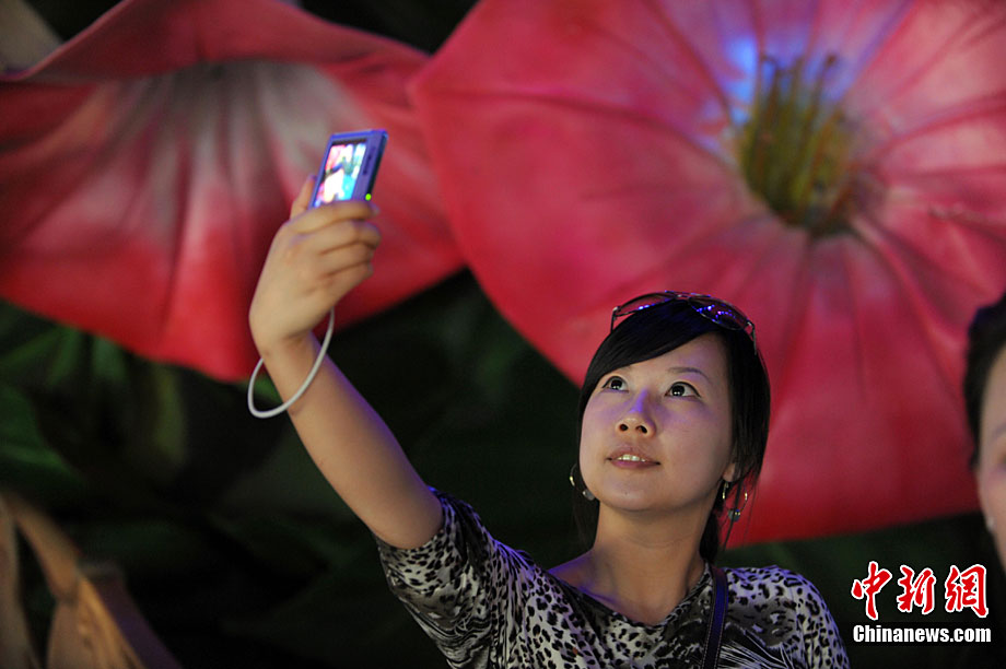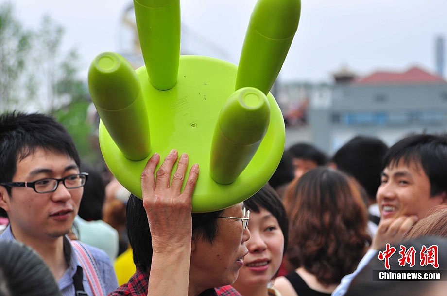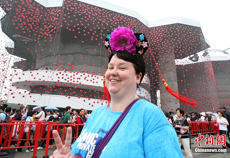 5月1日,上海世博會(huì)開園第一天,一名女游客陶醉在世博園里。中新社發(fā) 陳文 攝