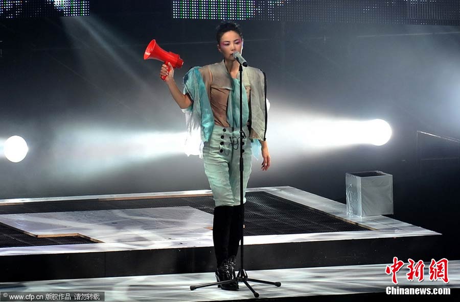 10月29日晚,暌違六年,華語(yǔ)樂壇天后級(jí)人物王菲在自己的家鄉(xiāng)——北京,再次開嗓,為歌迷奉獻(xiàn)出一場(chǎng)精彩絕倫的演唱會(huì)。整場(chǎng)演出,王菲在造型上十分搶眼,不論最開始的一身雪白,脫去外套后的蓬蓬裙顯得清新脫俗,或是中間段的摩登女郎裝扮、騎士裝、拖地長(zhǎng)禮服,都令她展現(xiàn)不同韻味。圖片來(lái)源:CFP視覺中國(guó)