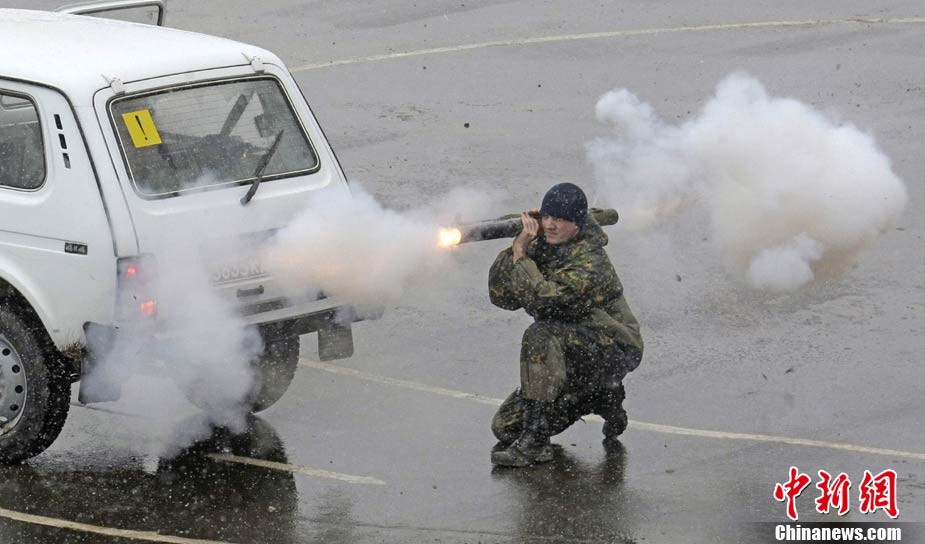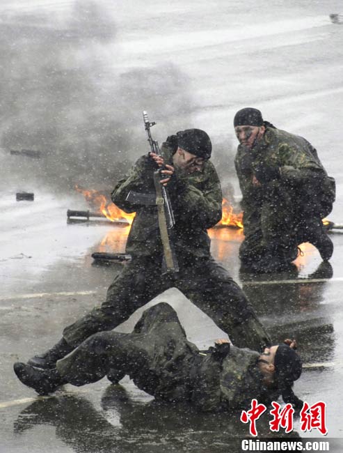 10月29日,俄羅斯莫斯科郊區(qū),俄羅斯特警在Interpolitex-2010國(guó)際警察與防務(wù)技術(shù)展上進(jìn)行示范戰(zhàn)術(shù)演練。