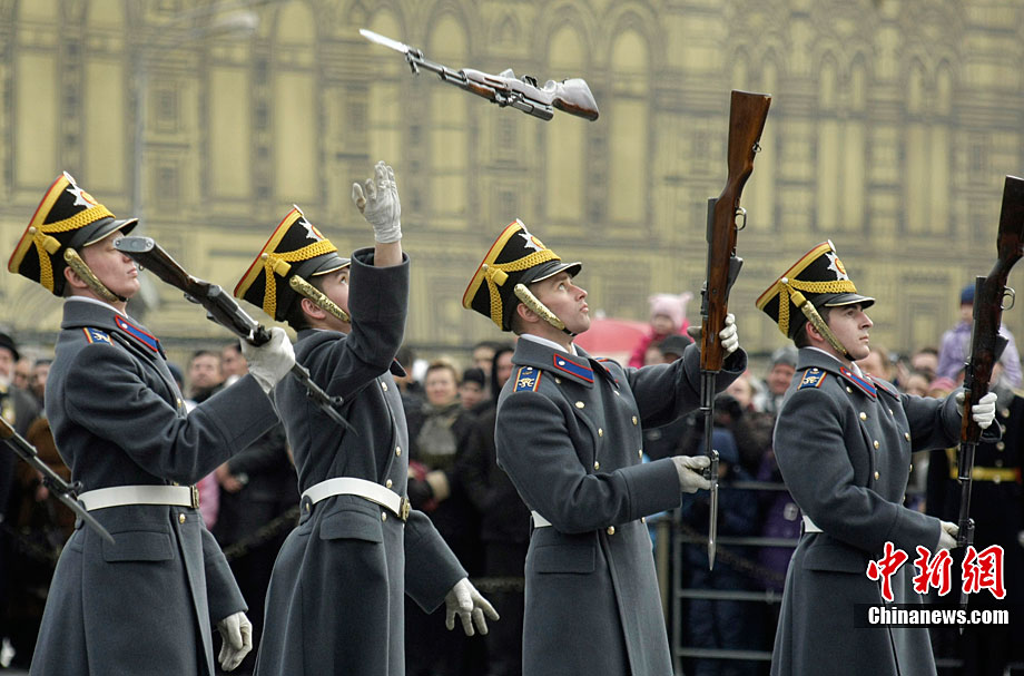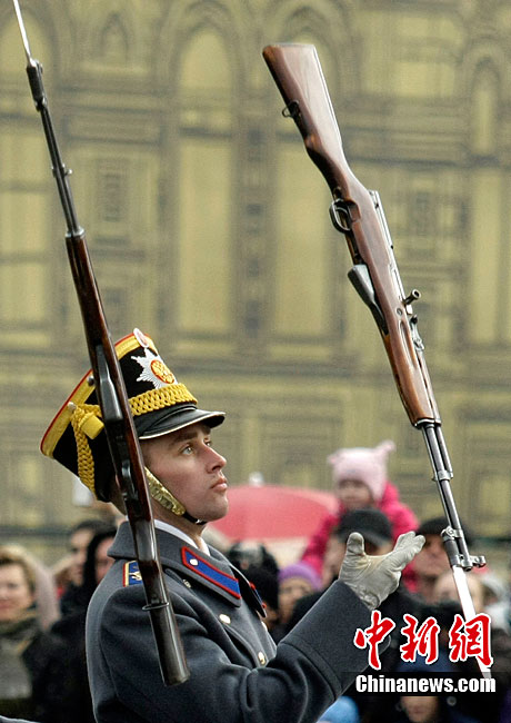 當(dāng)?shù)貢r(shí)間10月30日,俄羅斯首都莫斯科的克里姆林宮前衛(wèi)兵舉行了隆重的換崗儀式。圖為衛(wèi)兵在換崗儀式上舉行花槍表演。