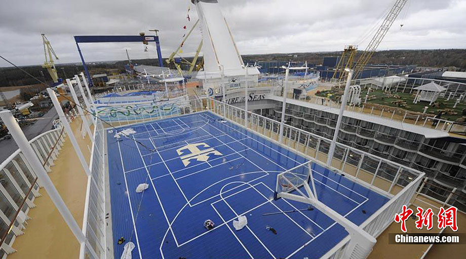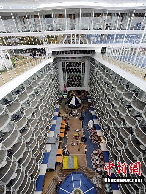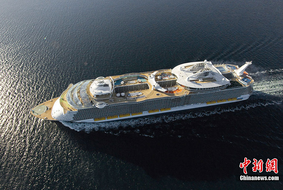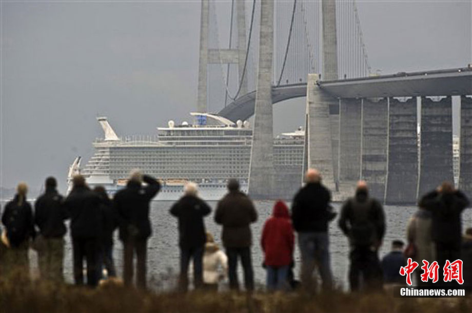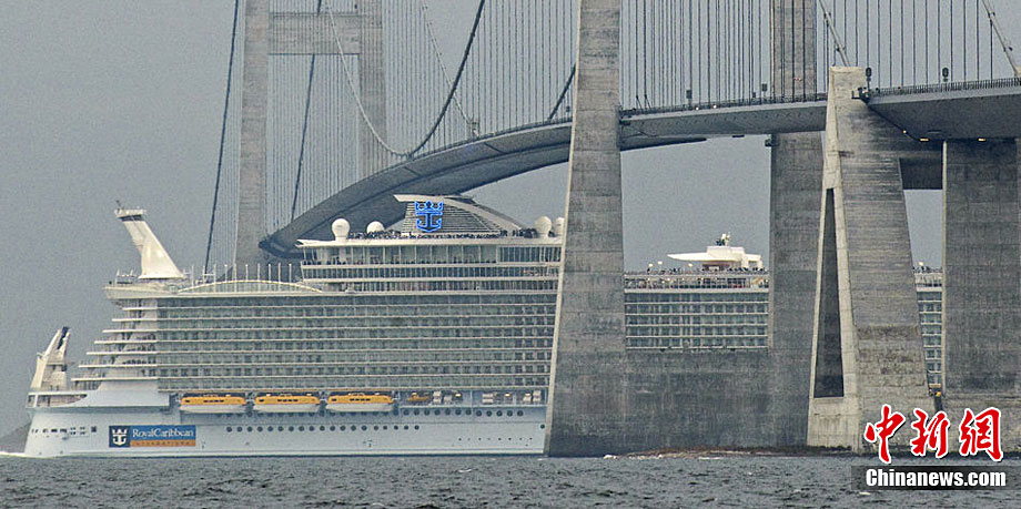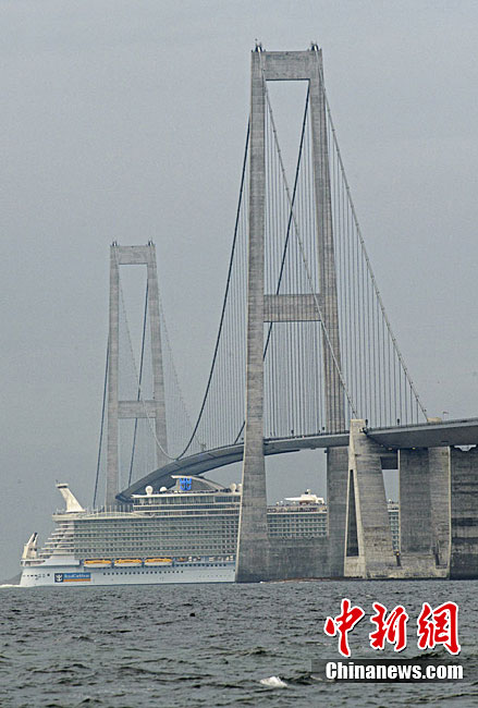 近日,世界最大郵輪“海洋魅力號”于芬蘭圖爾庫船廠完工,并將于2010年12月進行首航。這艘堪稱海上奇觀的豪華郵輪長361米、寬66米,水面高72米,排水量達22.5萬噸,共有16層甲板和2704個客艙,可搭載6360名游客和2100名船員。尚未經(jīng)受大風(fēng)大浪考驗的海洋魅力號在從造船廠前往美國佛羅里達州的過程中順利通過了丹麥一座距離船頂4厘米的大橋。