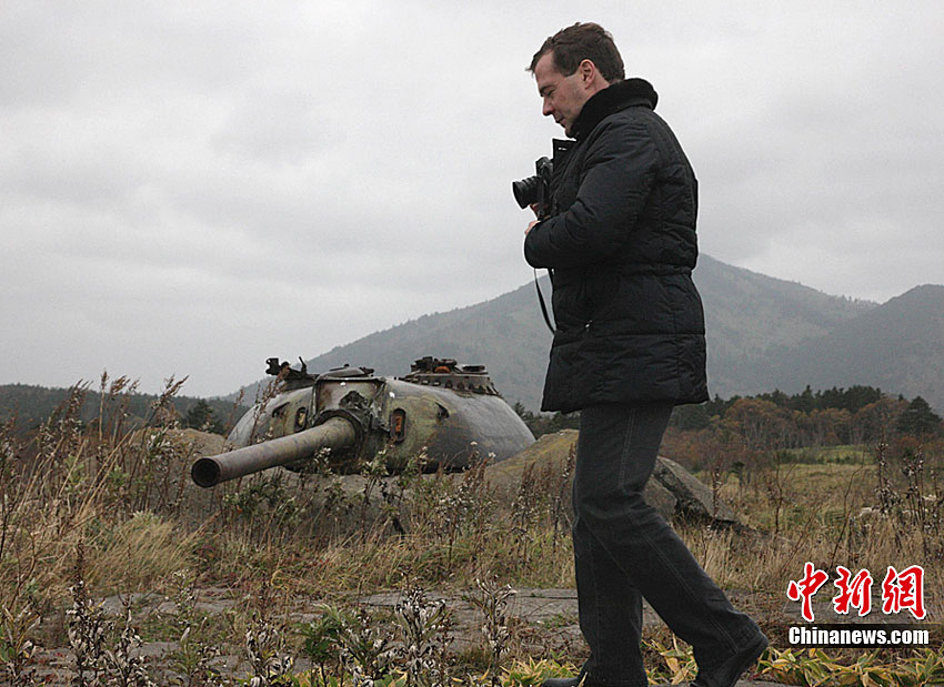 11月1日上午,俄羅斯總統(tǒng)梅德韋杰夫登上南千島群島(日本稱北方四島)的國(guó)后島。這是俄羅斯國(guó)家元首首次視察俄日之間存在爭(zhēng)議的島嶼。