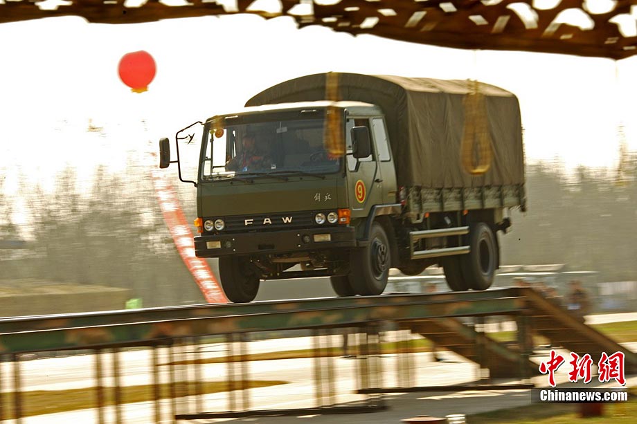10月31日,空軍成立61年來(lái)規(guī)模最大的后勤專業(yè)技能大比武在沈陽(yáng)落幕。在3天的時(shí)間里,784名后勤精英在49個(gè)課目中進(jìn)行比拼。參加這次大比武的人員來(lái)自空軍直屬及所轄7個(gè)軍區(qū)空軍、空降兵部隊(duì)的各級(jí)后勤系統(tǒng)。今年3月以來(lái),空軍以《空軍后勤訓(xùn)練和考核大綱》等為基本依據(jù),在空軍后勤現(xiàn)有的軍需、油料、衛(wèi)生、軍事交通、機(jī)場(chǎng)營(yíng)房等7個(gè)專業(yè)中逐級(jí)進(jìn)行全員選拔。七大專業(yè)既包括輕武器分解結(jié)合與實(shí)彈射擊、炊事、車輛駕駛等軍隊(duì)通用訓(xùn)練課目,也包括輸油管線搶修、機(jī)場(chǎng)搶修、獵鷹驅(qū)鳥(niǎo)和獵槍打靶等具有濃厚空軍色彩的課目。圖為駕駛員選手比試通過(guò)高架橋。譚超 攝 圖片來(lái)源:CNSPHOTO