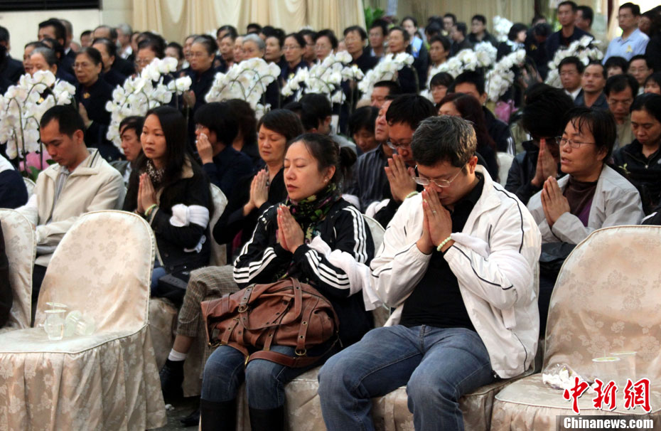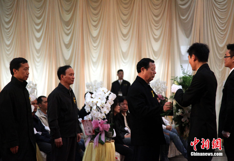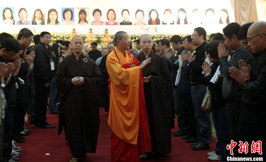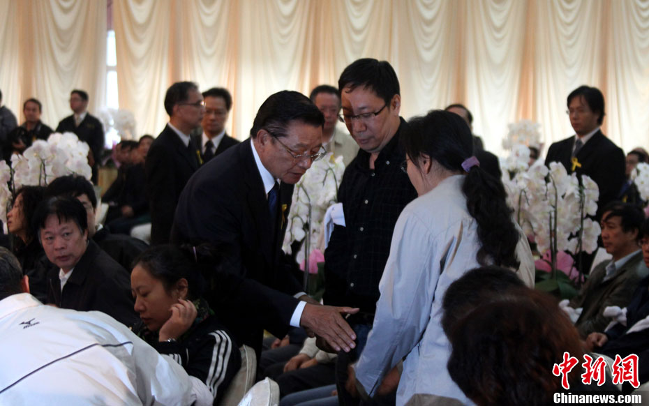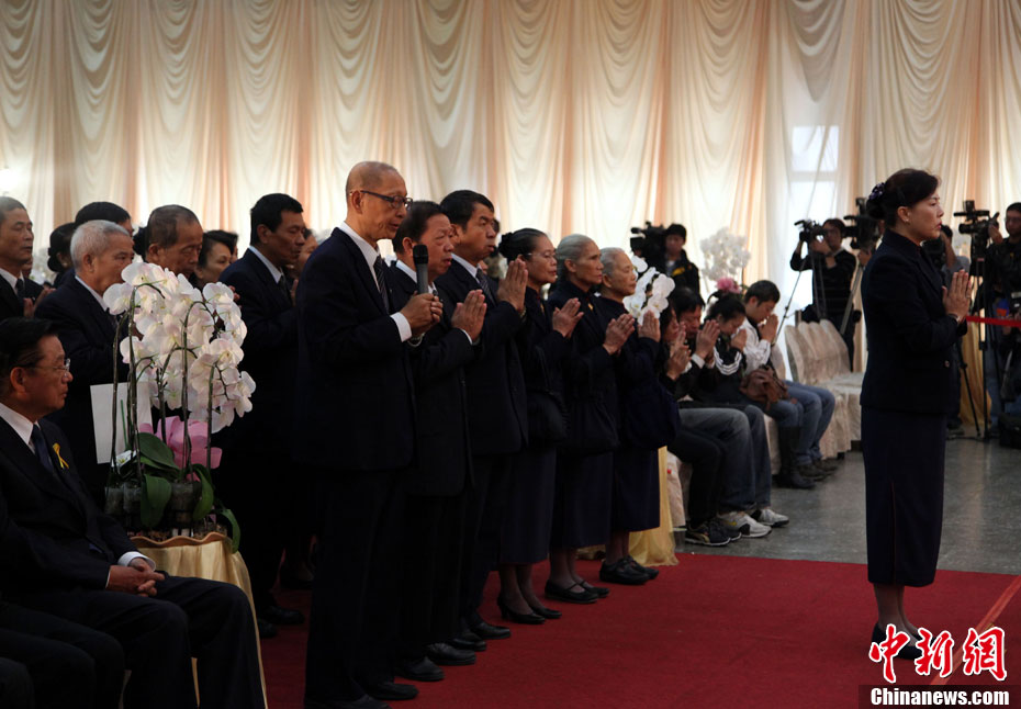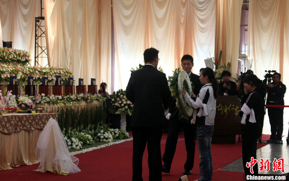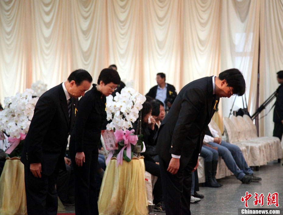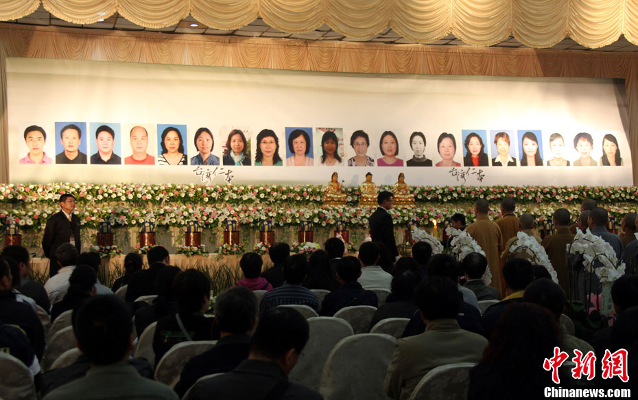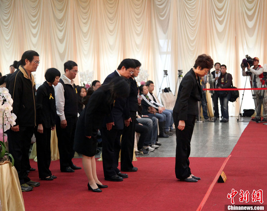 11月4日,20名在臺(tái)灣蘇花公路罹難的大陸旅客家祭公祭儀式今天下午在臺(tái)北舉行。圖為臺(tái)灣海峽兩岸觀光旅游協(xié)會(huì)會(huì)長(zhǎng)賴瑟珍率臺(tái)旅會(huì)人員向罹難的大陸游客致哀。陳立宇 攝