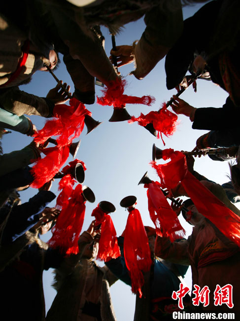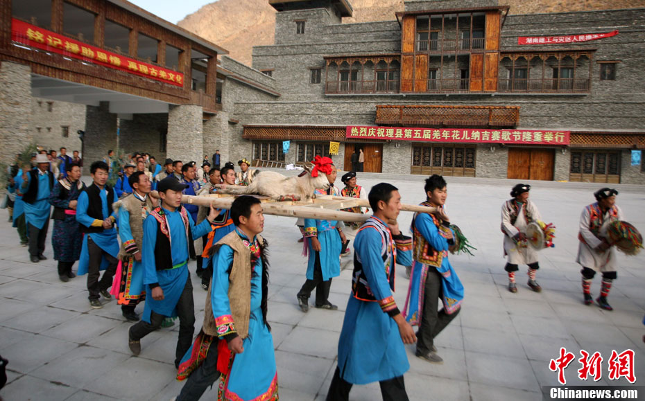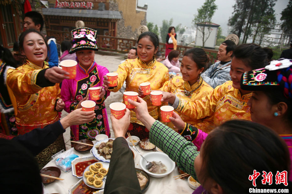 11月6日,四川汶川數(shù)千民眾穿著盛裝跳起羊皮鼓舞,歡度災(zāi)后重建基本完成后的第一個羌?xì)v新年。羌?xì)v年是羌族最重要的傳統(tǒng)節(jié)日,時間是每年的農(nóng)歷十月初一,羌族人通常用祭祀、唱酒歌、跳鍋莊舞等活動慶祝這一節(jié)日。