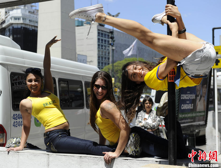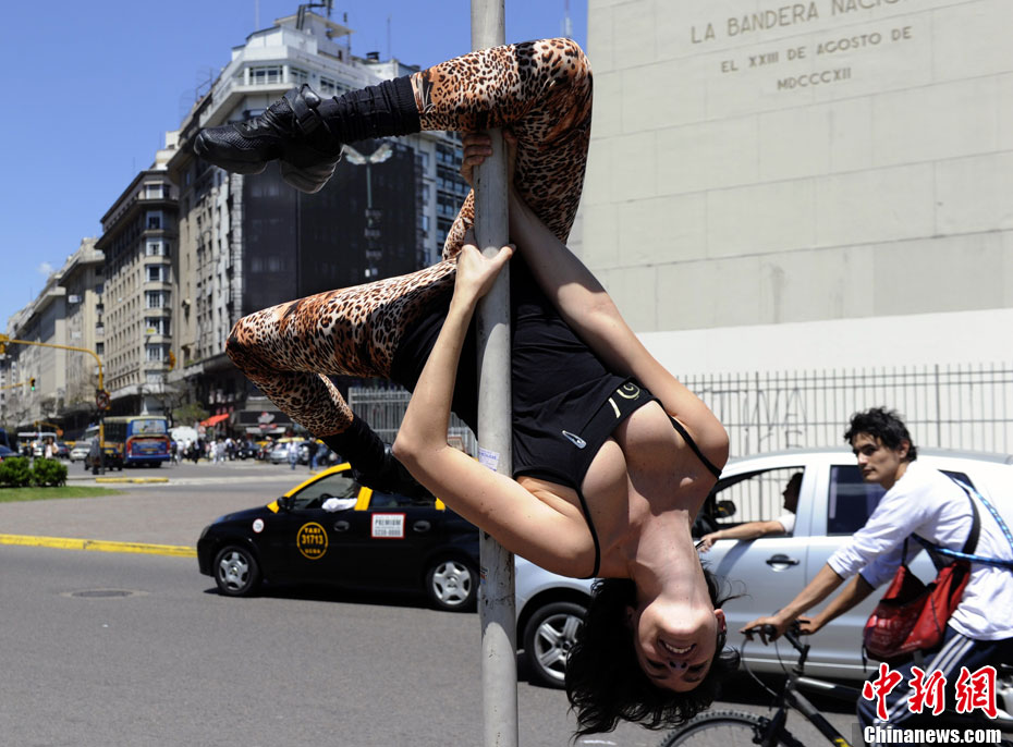 當?shù)貢r間11月5日,阿根廷“鋼管舞小姐大賽”評委在布宜諾斯艾利斯街頭上演了火辣的鋼管舞表演。