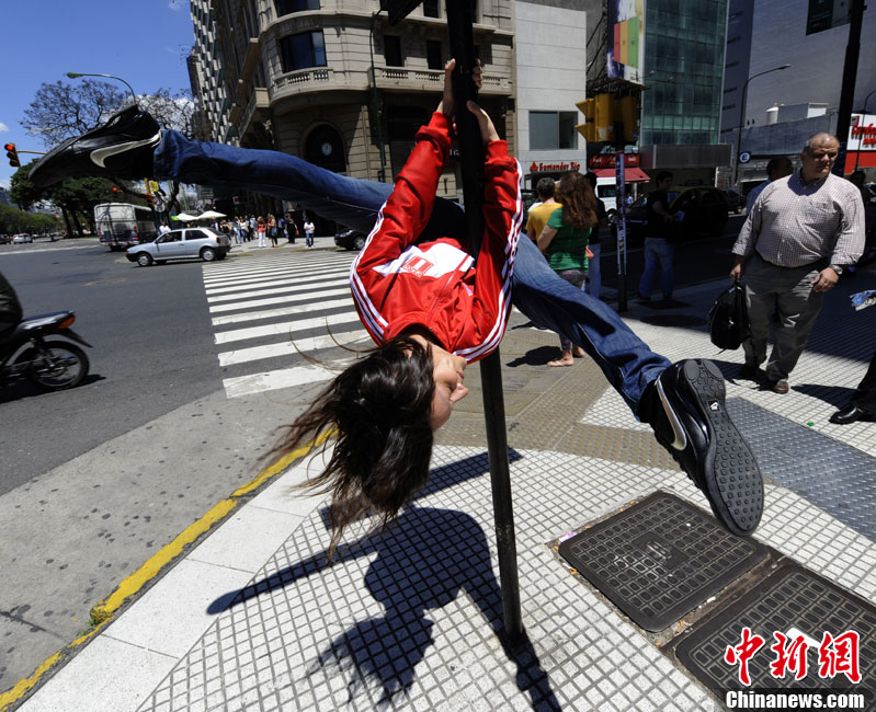 阿根廷街頭上演火辣鋼管舞