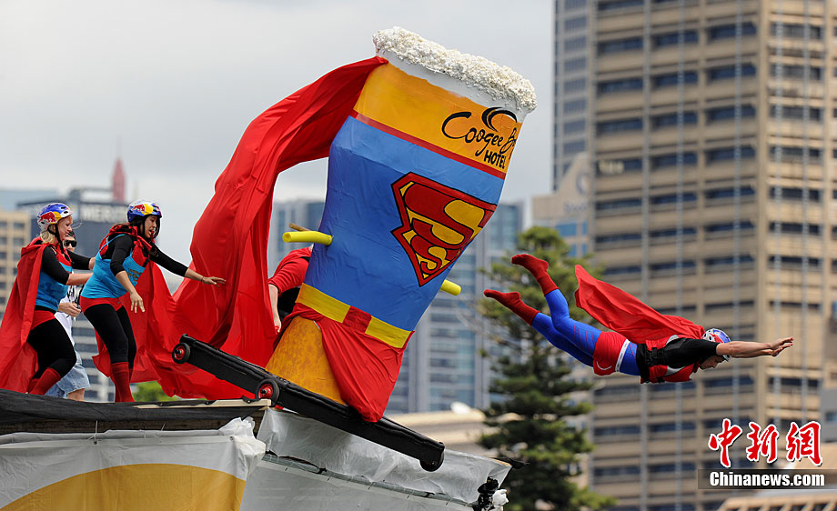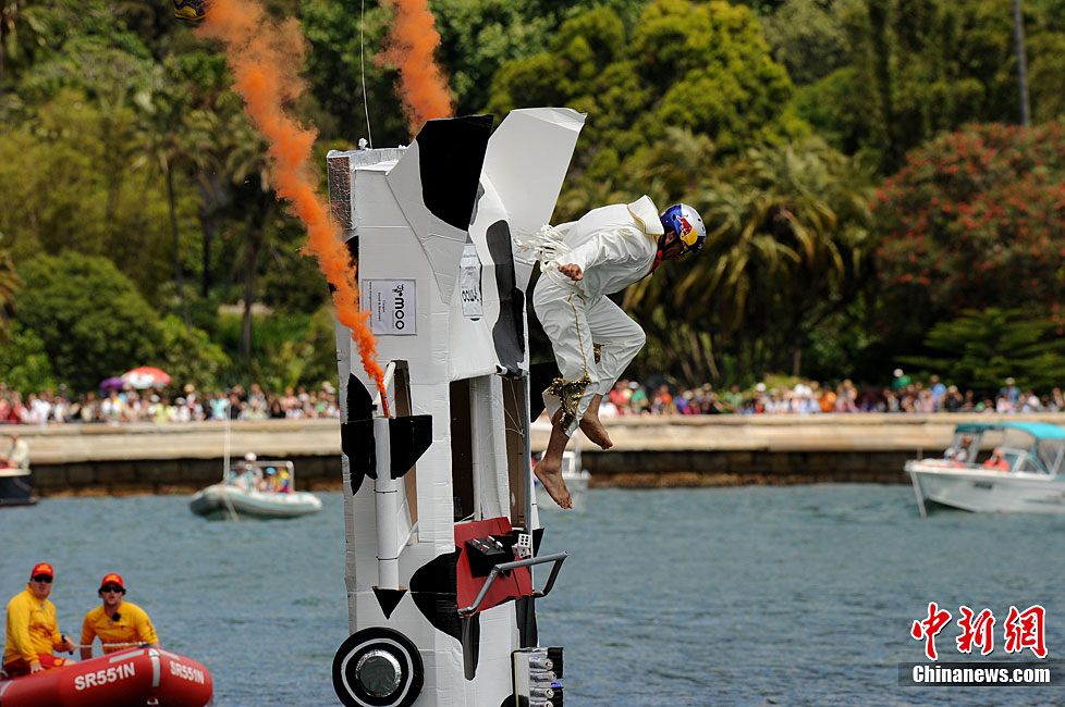 11月7日,在澳大利亞悉尼舉行了搞笑的紅牛杯“鳥人”大賽。據(jù)報(bào)道,這項(xiàng)賽事1991年起源于奧地利維也納,參賽選手自制人力飛行器從高臺(tái)起飛并最終躍入水中,飛行距離最遠(yuǎn)者獲勝。