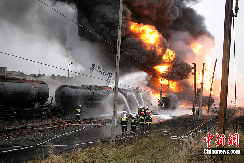 當(dāng)?shù)貢r(shí)間11月8日,波蘭比亞韋斯托克的兩節(jié)運(yùn)油車廂發(fā)生爆炸,造成10列車廂起火,至少1人受傷。