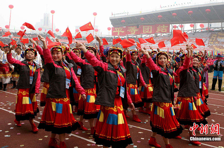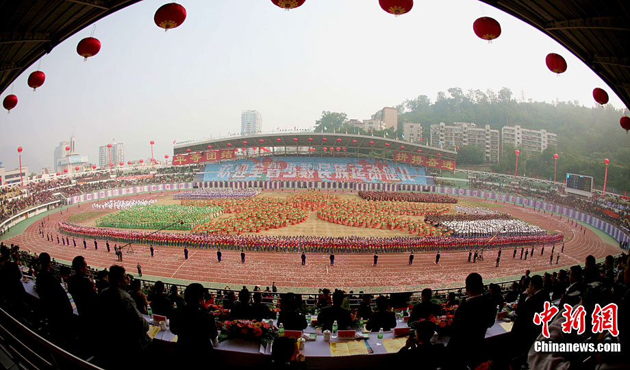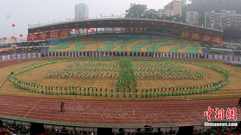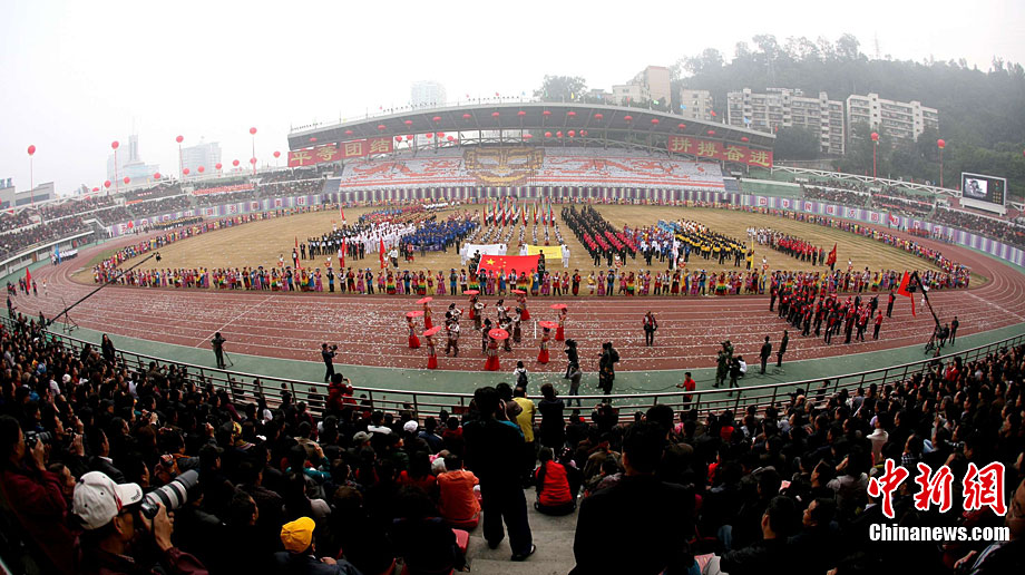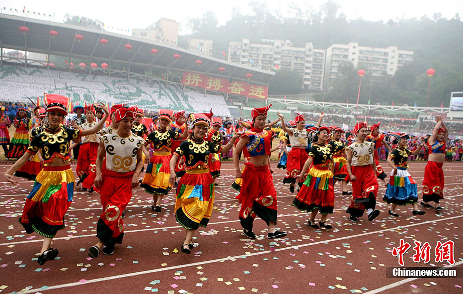 11月10日,四川省第13屆少數(shù)民族體育運(yùn)動(dòng)會(huì)在攀枝花拉開帷幕。來自涼山州、甘孜州、阿壩州、樂山市、雅安市等10個(gè)市州以及西南民族大學(xué)、成都體育學(xué)院共12支代表隊(duì)1066名運(yùn)動(dòng)員,將參加陀螺、民族式摔跤、田徑等9個(gè)競賽項(xiàng)目7天的比賽。本次運(yùn)動(dòng)會(huì)是四川歷屆少數(shù)民族運(yùn)動(dòng)會(huì)規(guī)模最大的一次,所有項(xiàng)目均可免費(fèi)觀看。中新社發(fā) 劉忠俊 攝