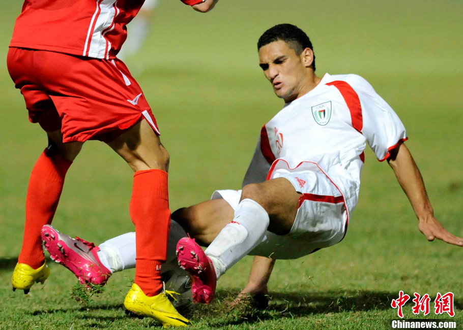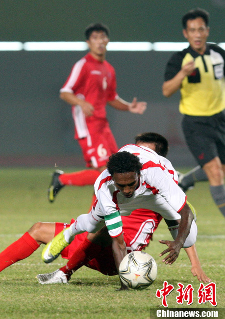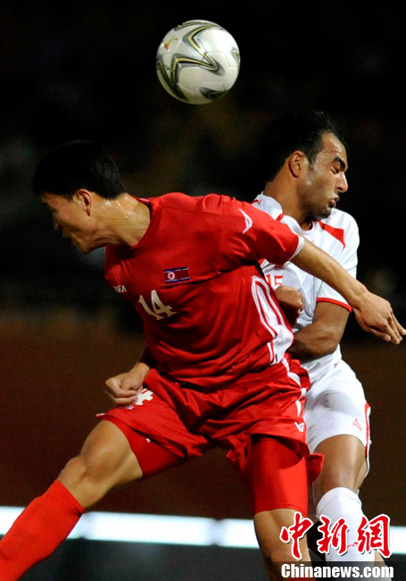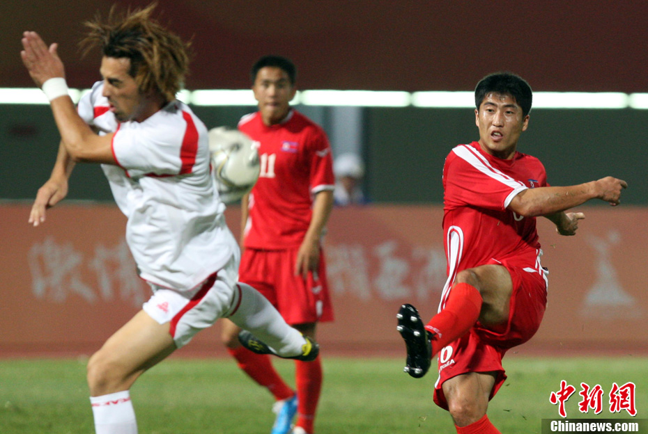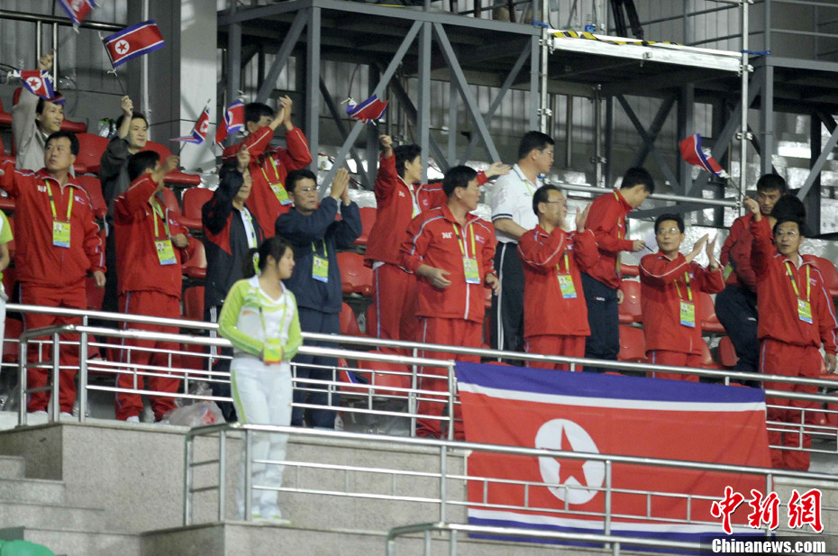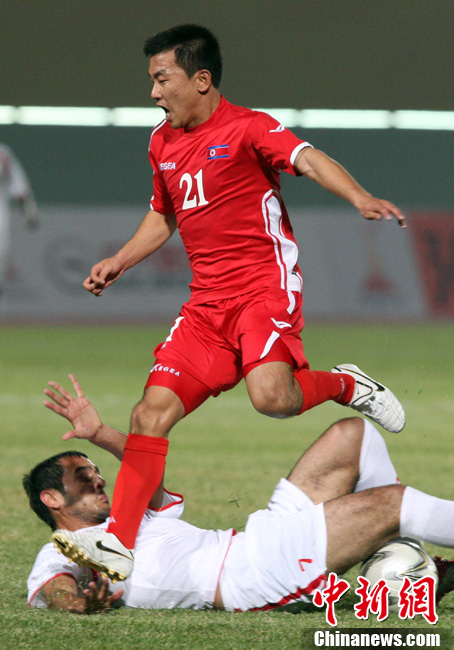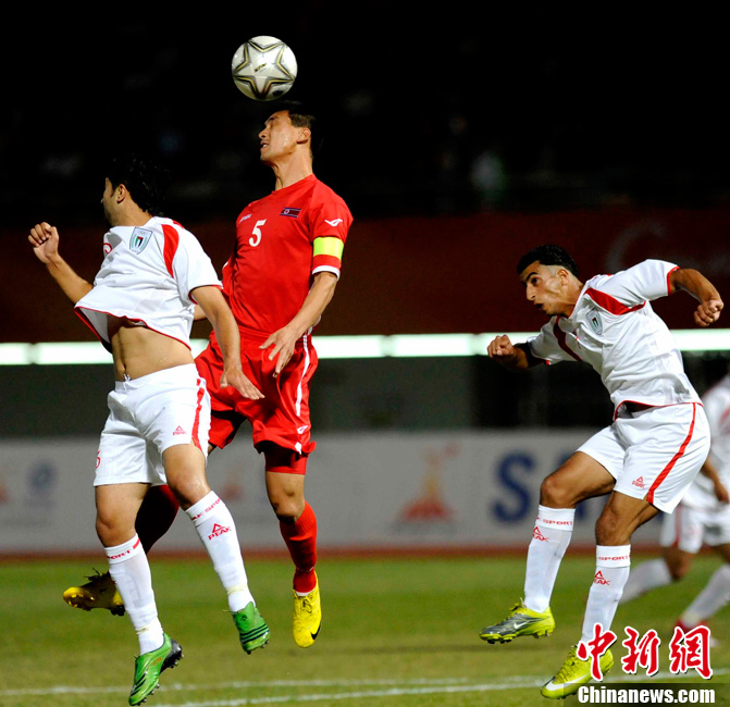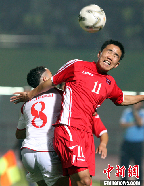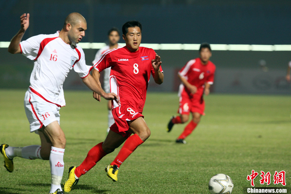 11月10日,廣州亞運(yùn)會男子足球小組賽C組第24場朝鮮與巴勒斯坦的比賽在番禹英東體育場舉行。最終,朝鮮以3比0戰(zhàn)勝巴勒斯坦。中新社記者 湯彥俊 攝