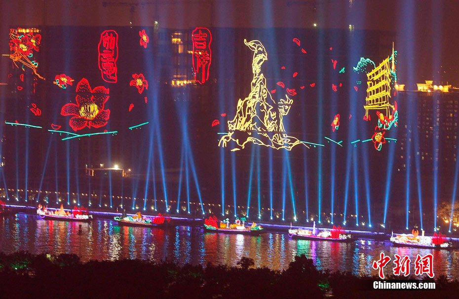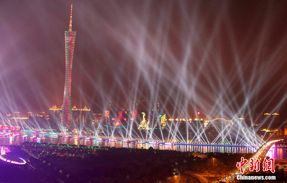 11月10日晚,廣州亞運(yùn)會開幕式舉行最后一次彩排,珠江兩岸流光溢彩。中新社記者 任晨鳴 攝