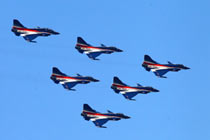 11月11日,珠海,中國(guó)空軍八一飛行表演隊(duì)首次進(jìn)行六機(jī)編隊(duì)演練,同時(shí)還進(jìn)行了拉煙、直立爬行、兩機(jī)穿越空中翻滾等高難度動(dòng)作的演練。第八屆珠海國(guó)際航展將于11月16日開(kāi)幕。于燕敏 攝 圖片來(lái)源:CFP視覺(jué)中國(guó)