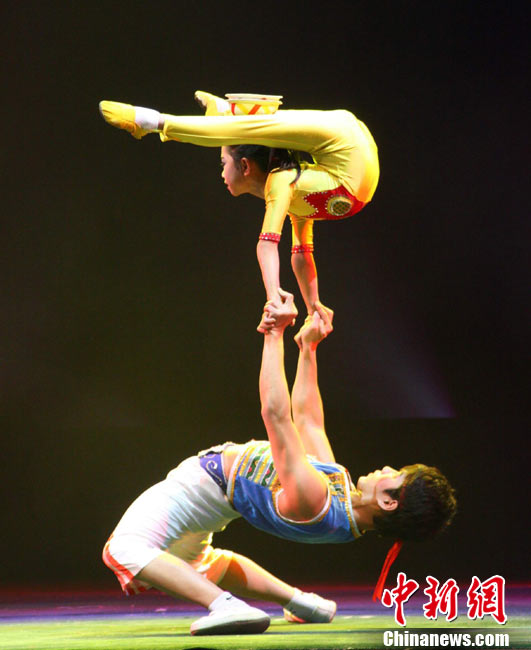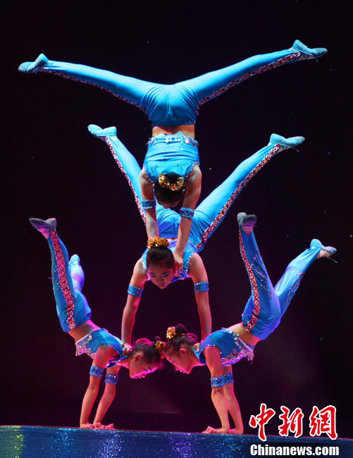 由廣西文化廳,廣西文學(xué)藝術(shù)界聯(lián)合會,廣西電視臺聯(lián)合主辦的第一屆廣西雜技(魔術(shù))比賽于11月10至11日在南寧舉行。全區(qū)共有24個雜技節(jié)目,14個魔術(shù)節(jié)目報名參賽。有28個節(jié)目進入決賽,其中雜技類16個、魔術(shù)類12個。 中新社發(fā) 曾德軍 攝