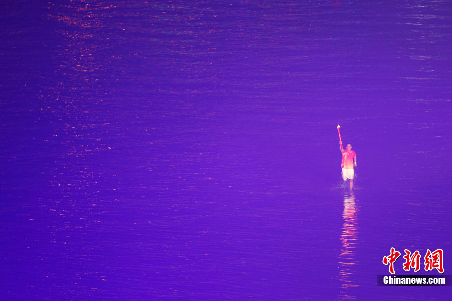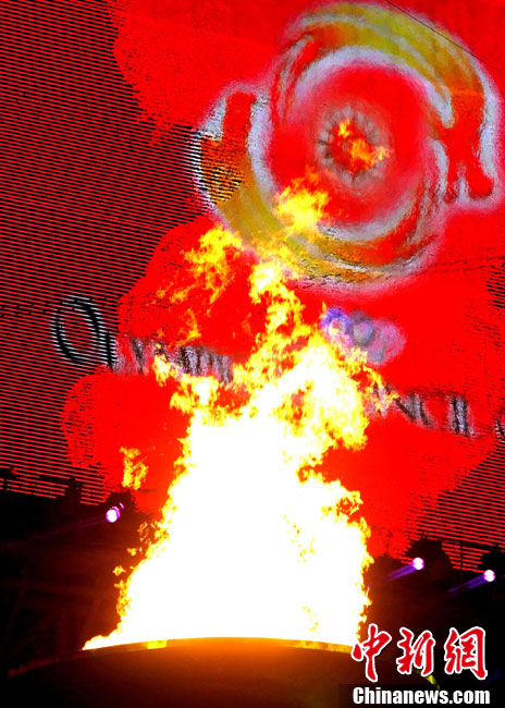 第16屆亞運會11月12日晚在廣州開幕,圖為亞運會主火炬點燃。中新社記者 湯彥俊 攝
