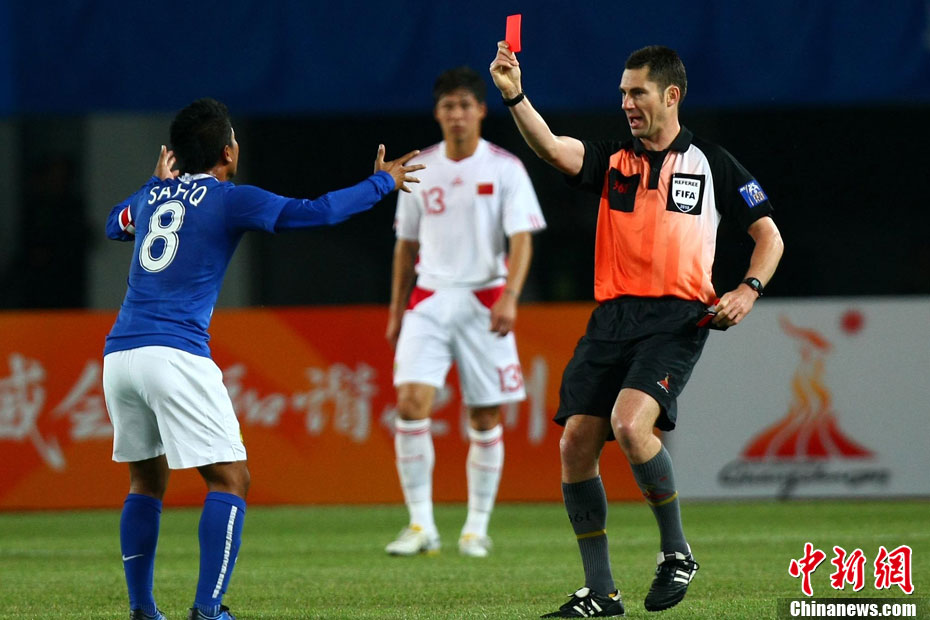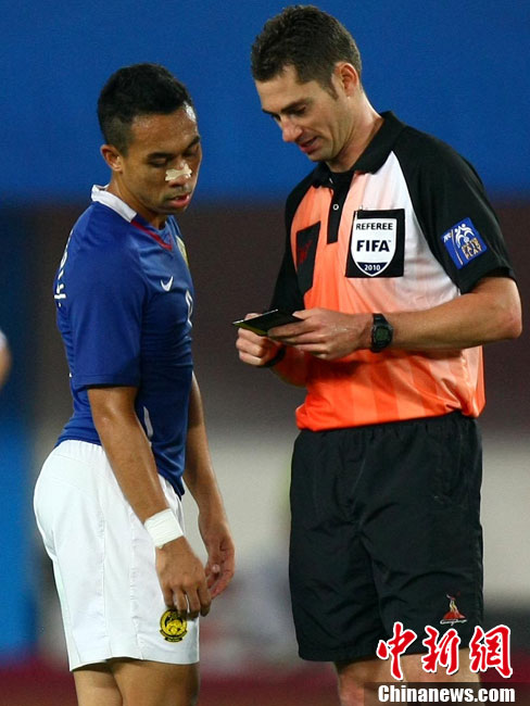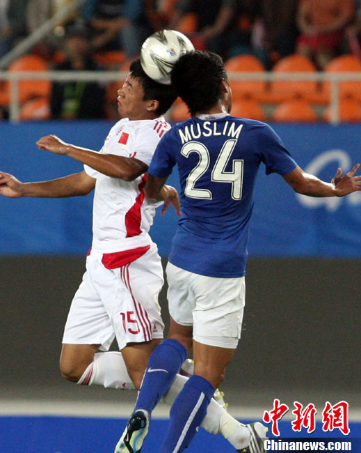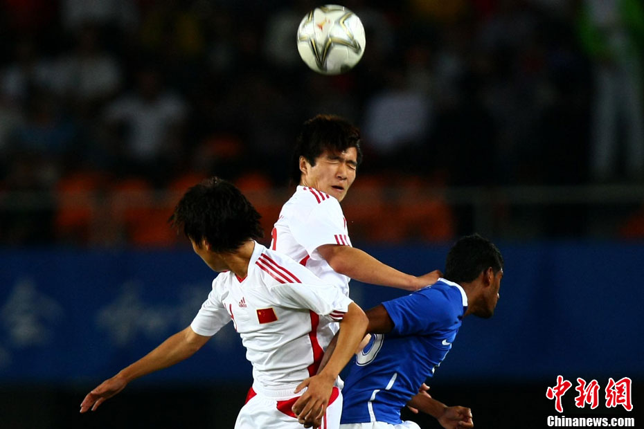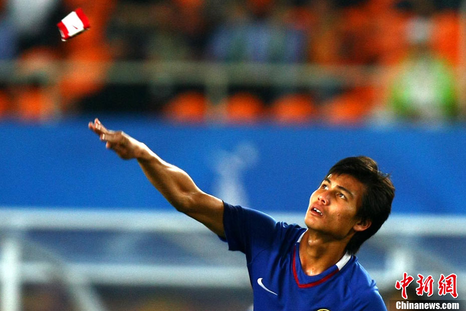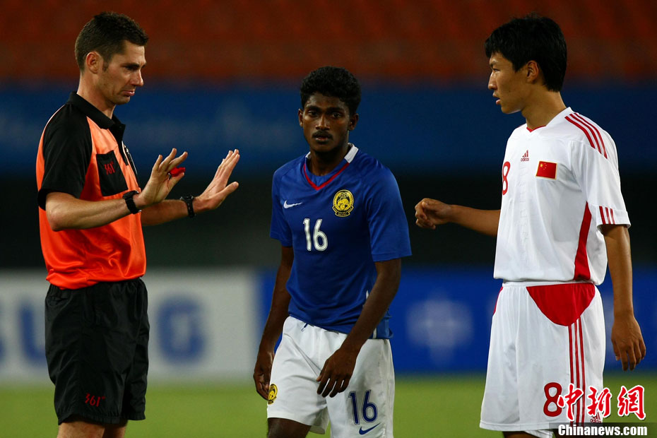 11月13日,在廣州天河體育場進(jìn)行的亞運(yùn)會男子足球小組賽A組第31場中國隊(duì)對陣馬來西亞的生死之戰(zhàn),中國隊(duì)以3比0戰(zhàn)勝馬來西亞隊(duì)小組出線。中新社記者 富田 攝