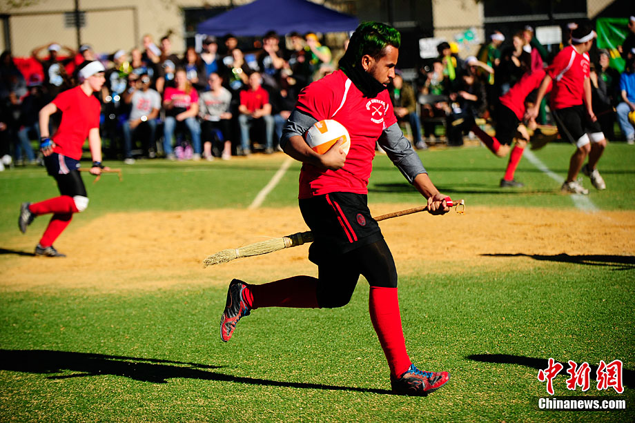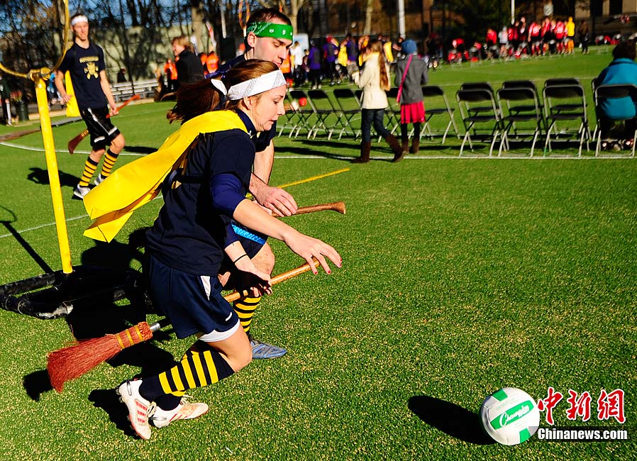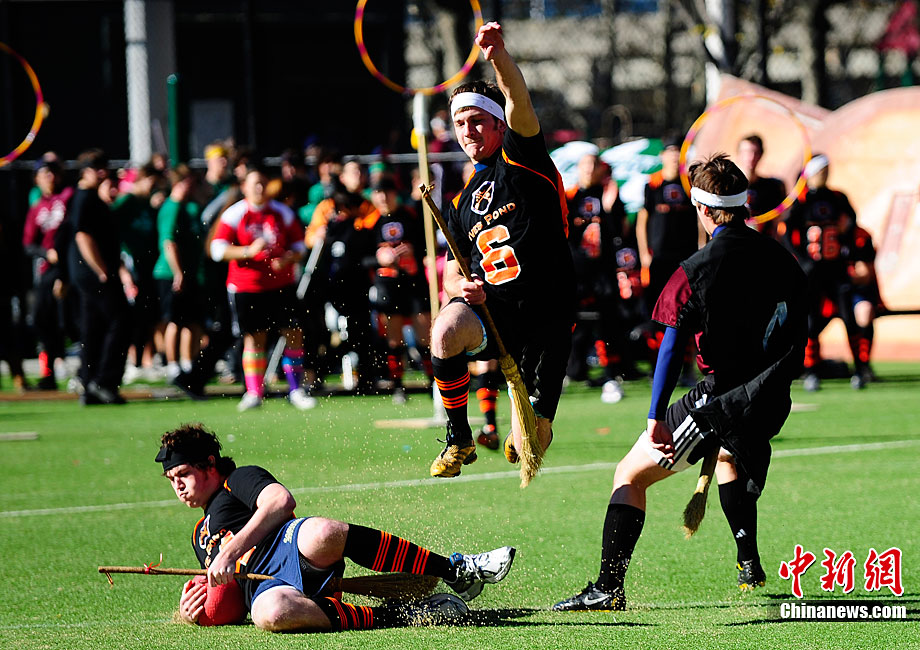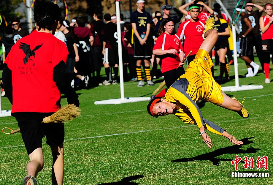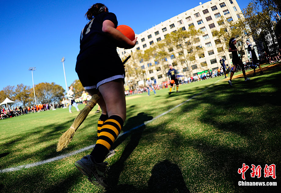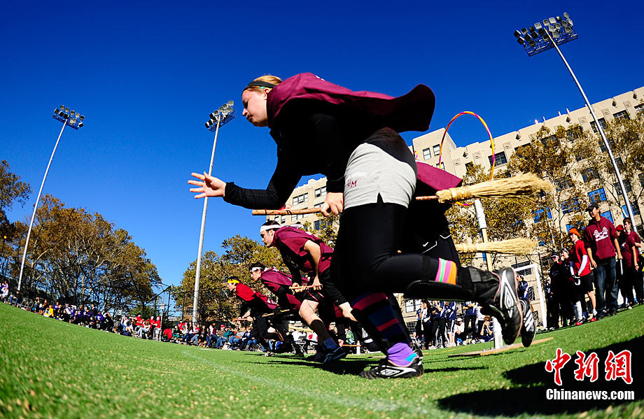 當(dāng)?shù)貢r(shí)間11月13日,數(shù)百名哈利波特迷們?cè)诿绹?guó)紐約舉行了第四屆魁地奇世界杯比賽。看過(guò)《哈利·波特》小說(shuō)或電影的人都會(huì)對(duì)其中描寫(xiě)的魁地奇球賽印象深刻,F(xiàn)實(shí)版的魁地奇比賽嚴(yán)格遵循原著風(fēng)格,并發(fā)展成了一項(xiàng)混合手球、躲避球,還摻雜了一點(diǎn)曲棍球的新奇運(yùn)動(dòng)。