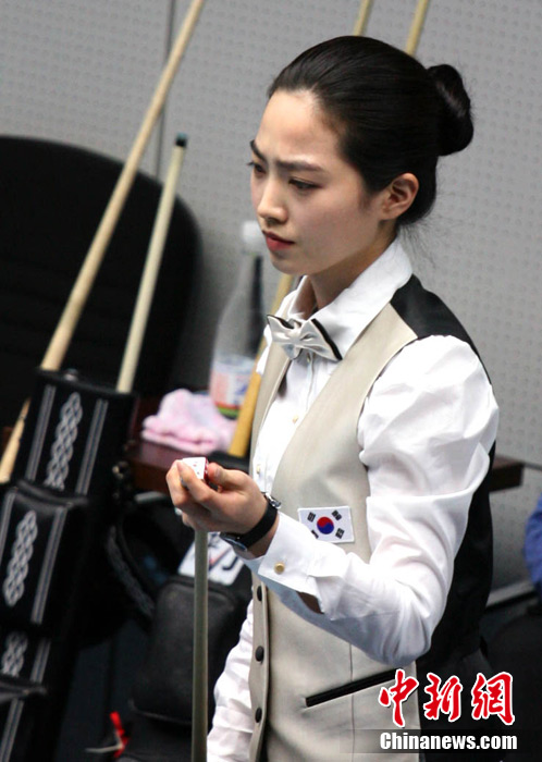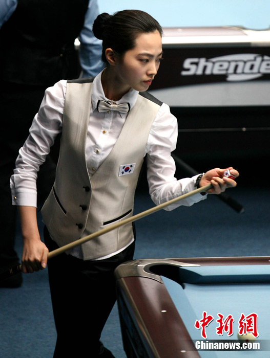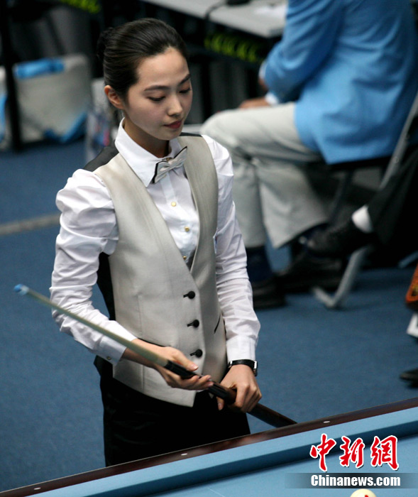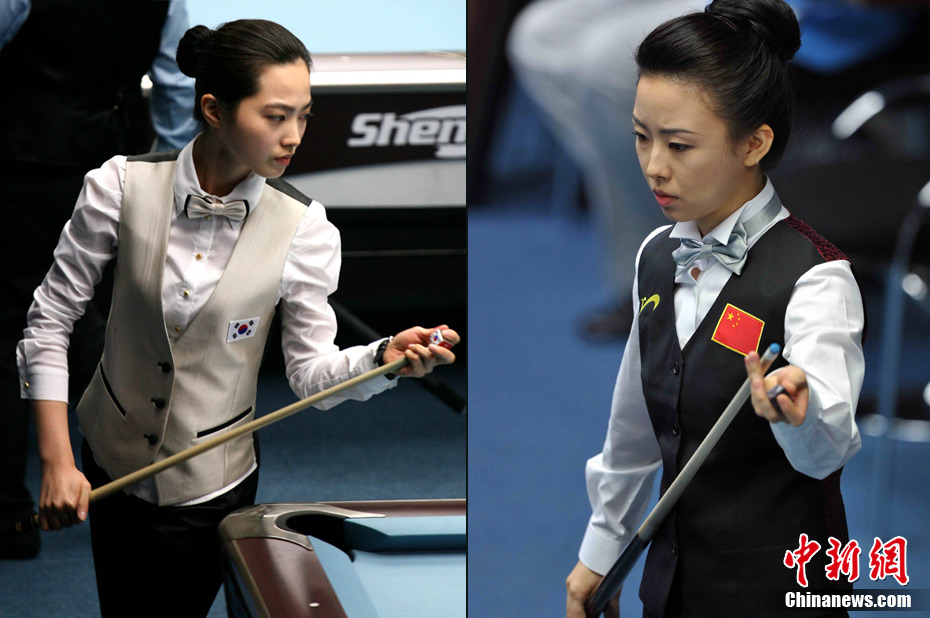 11月15日,女子美式九球單打預(yù)賽,來自中國的潘曉婷和來自韓國的車侑藍(車俞嵐)分別戰(zhàn)勝對手,晉級下一輪,兩位知名選手的亮相,掀起場內(nèi)的“美麗風(fēng)暴”。