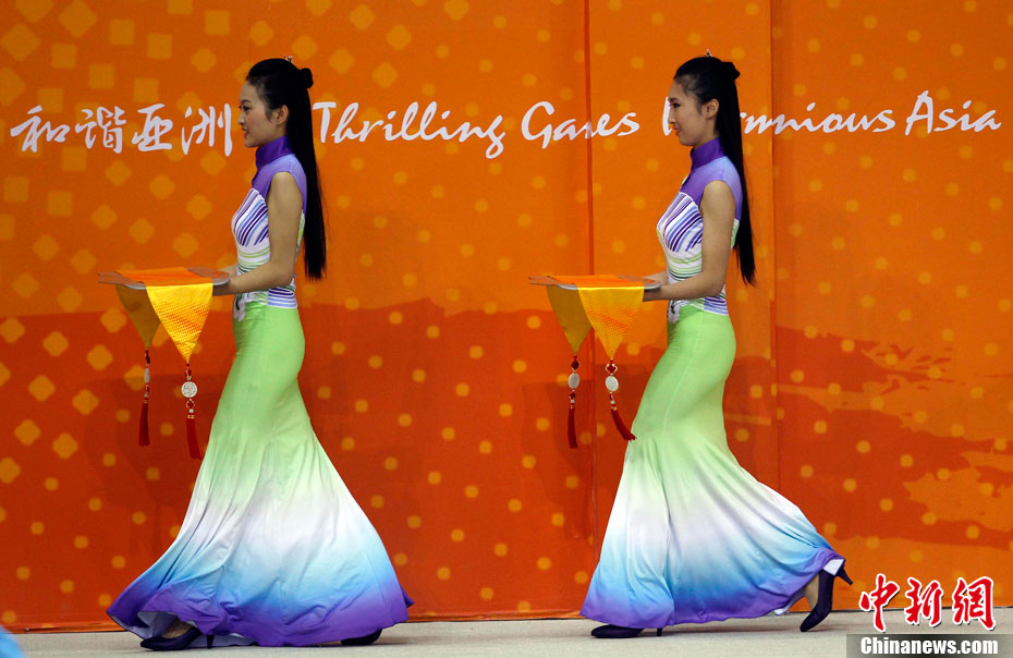 廣州亞運(yùn)會(huì)比賽開始后,對(duì)于這些美麗的姑娘們“戰(zhàn)斗”才剛剛打響,她們每天早上6點(diǎn)半就起床,趕到賽場(chǎng),開始4個(gè)小時(shí)的準(zhǔn)備工作——化妝、做頭發(fā)、整體造型,這一切都為頒獎(jiǎng)典禮的那短短一刻。