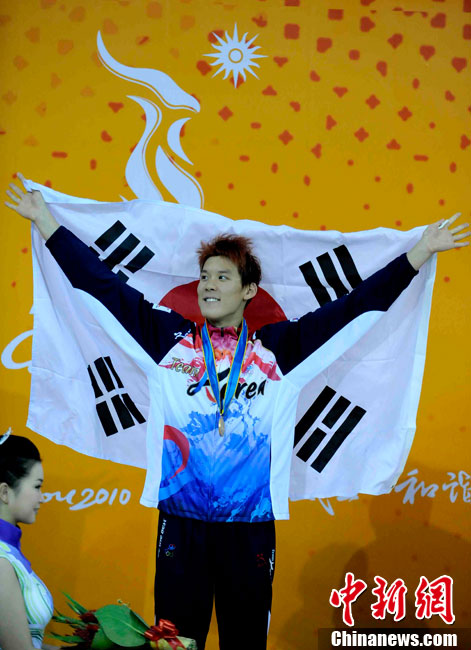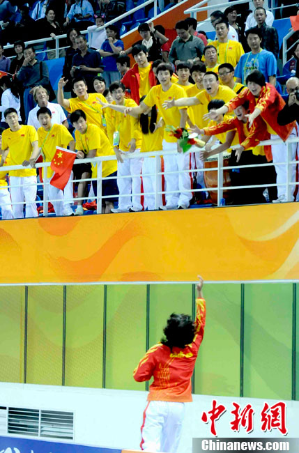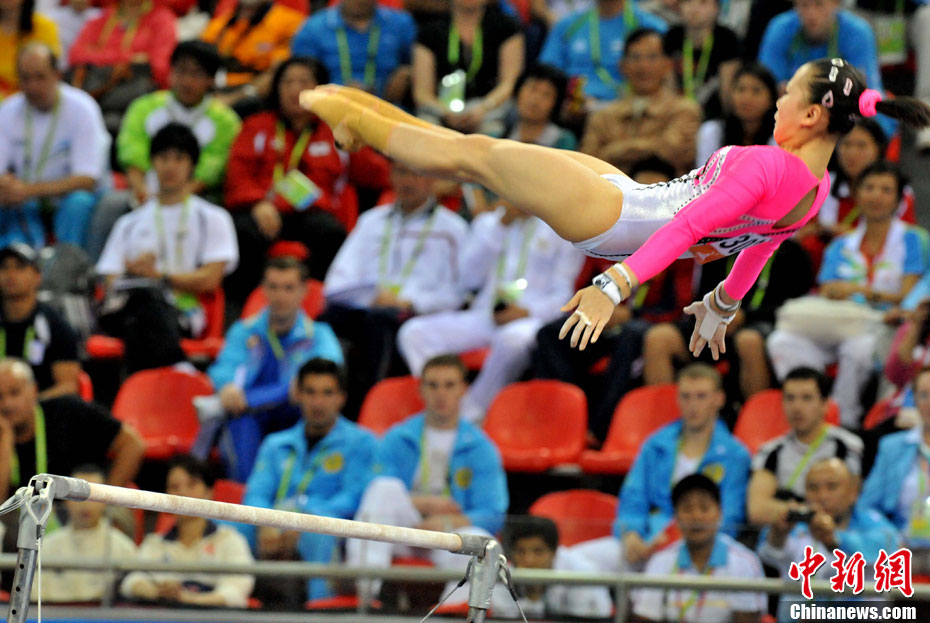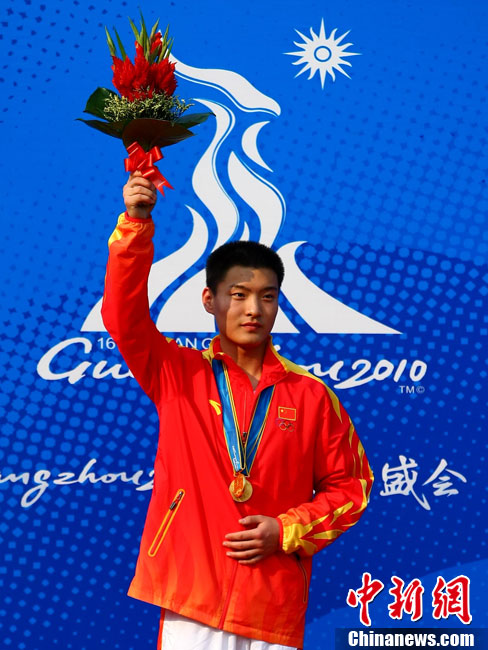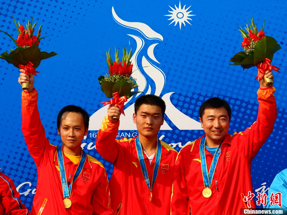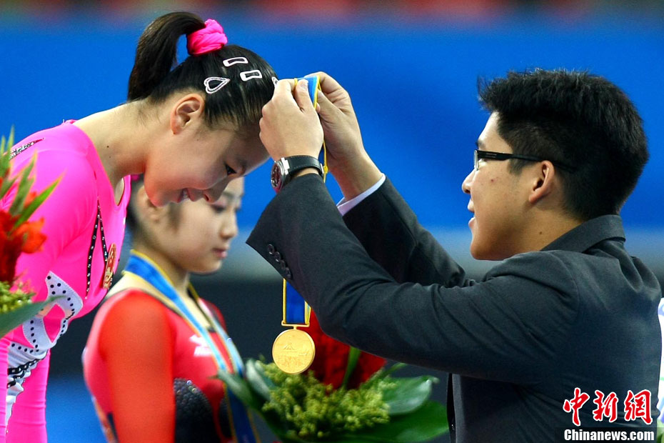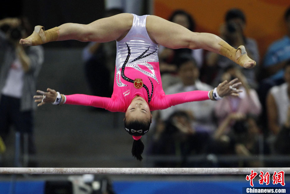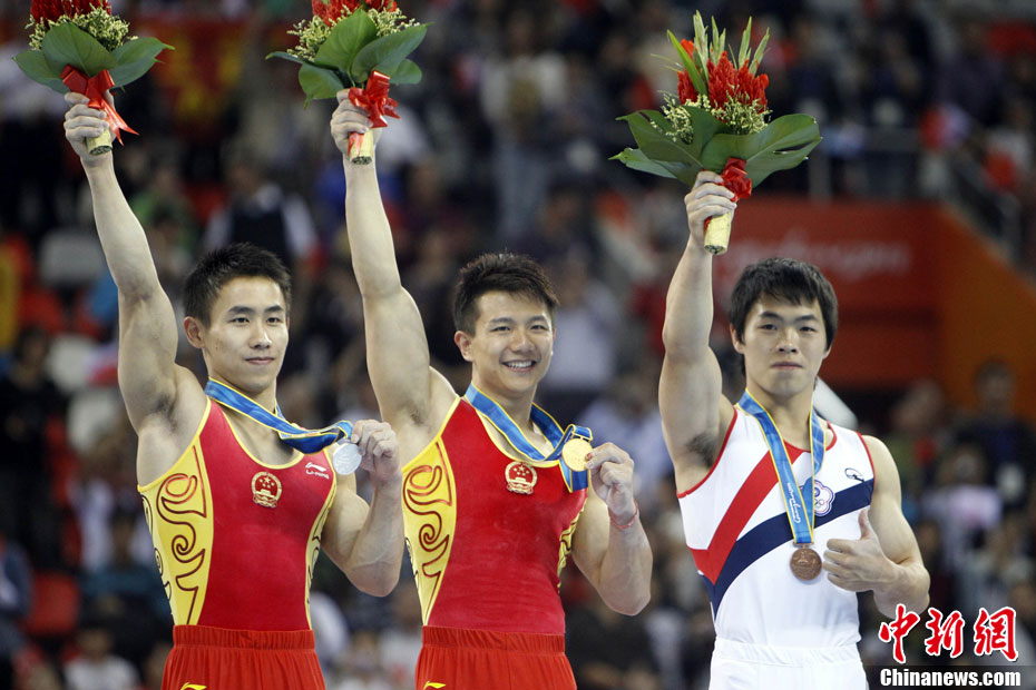 11月16日,2010年廣州亞運會體操比賽繼續(xù)在亞運城體育館進行。在男子鞍馬決賽中,雅典奧運會冠軍、中國名將滕海濱(圖)以15.375分如愿摘金;銀牌被另一位中國選手嚴明勇獲得,成績?yōu)?4.726;中華臺北選手黃哲奎以14.70分排在第三。這已是滕海濱在本屆賽事中,繼男子團體和個人全能之后收獲的第三塊金牌。中新社記者 富田 攝