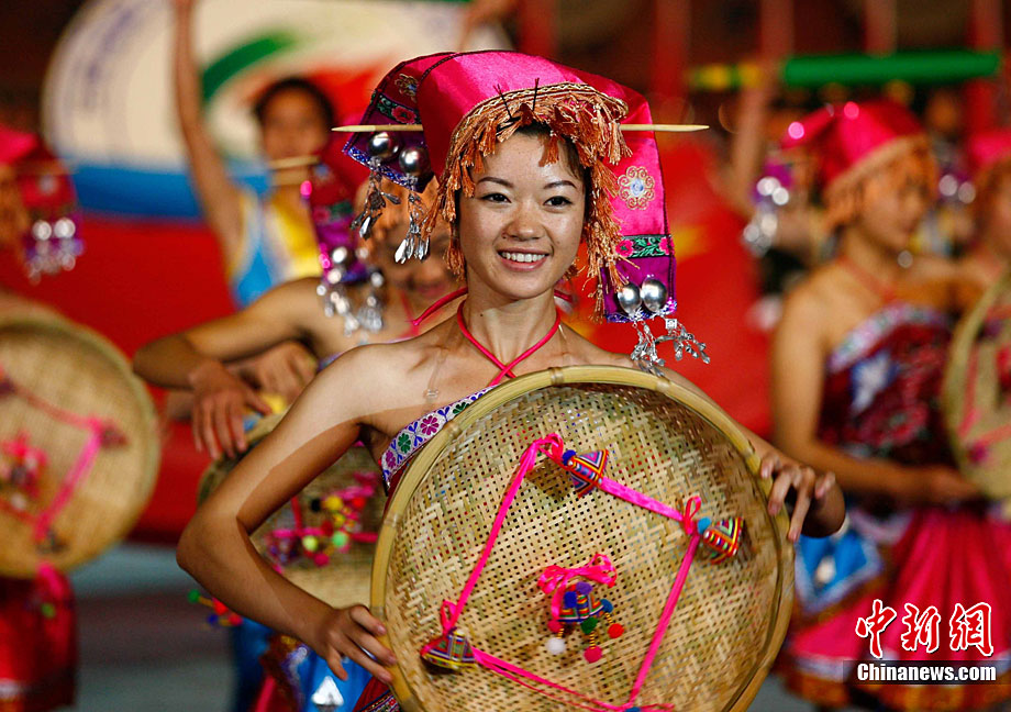 11月16日晚,云南省第九屆少數(shù)民族傳統(tǒng)運動會在云南省普洱市開幕。云南是一個多民族的邊疆省份,來源于生活的民族傳統(tǒng)體育歷史悠久,特色鮮明,深受各族人民的喜愛。圖為佤族舞者精彩的表演吸引觀眾的目光。中新社記者 劉冉陽 攝
