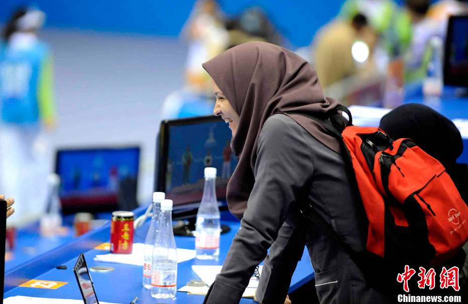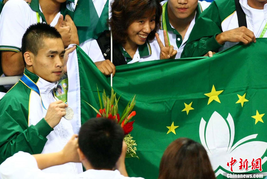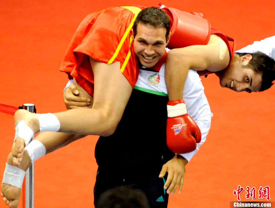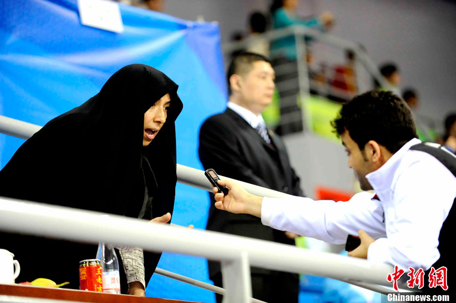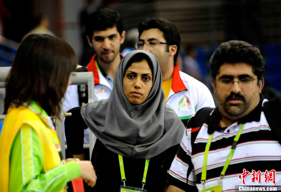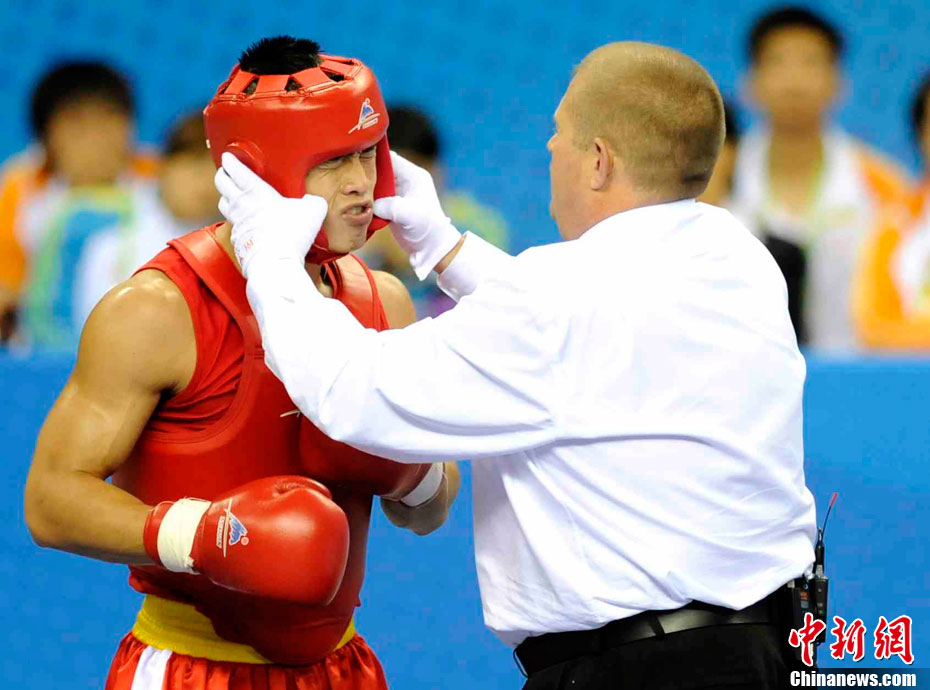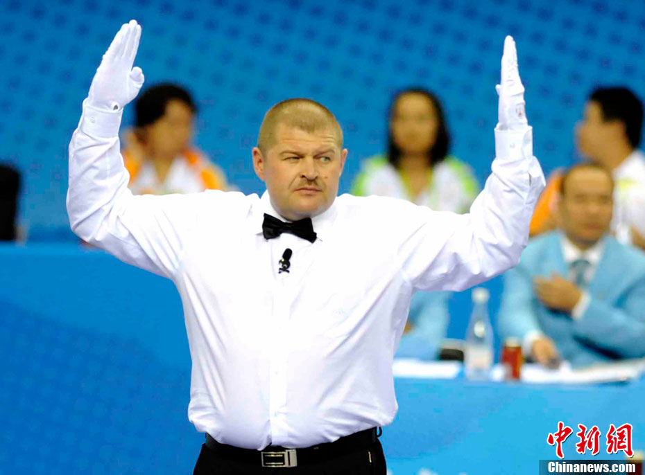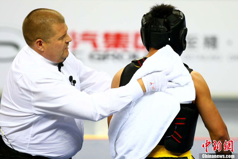 11月17日晚,亞運(yùn)會(huì)散手比賽在南沙體育館進(jìn)行,賽場(chǎng)上一位外籍裁判豐富的動(dòng)作和表情贏得滿場(chǎng)觀眾的喝彩。中新社記者 王東明 攝