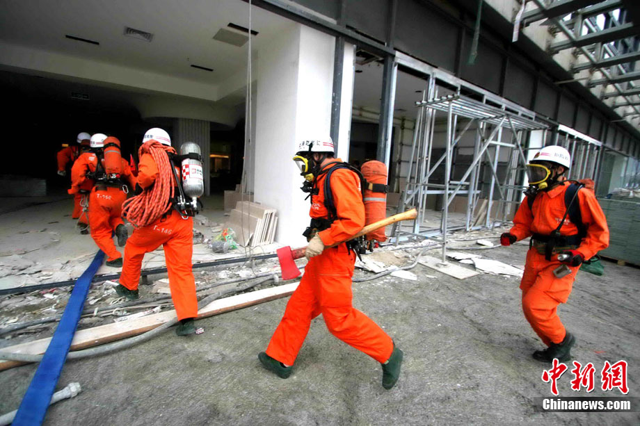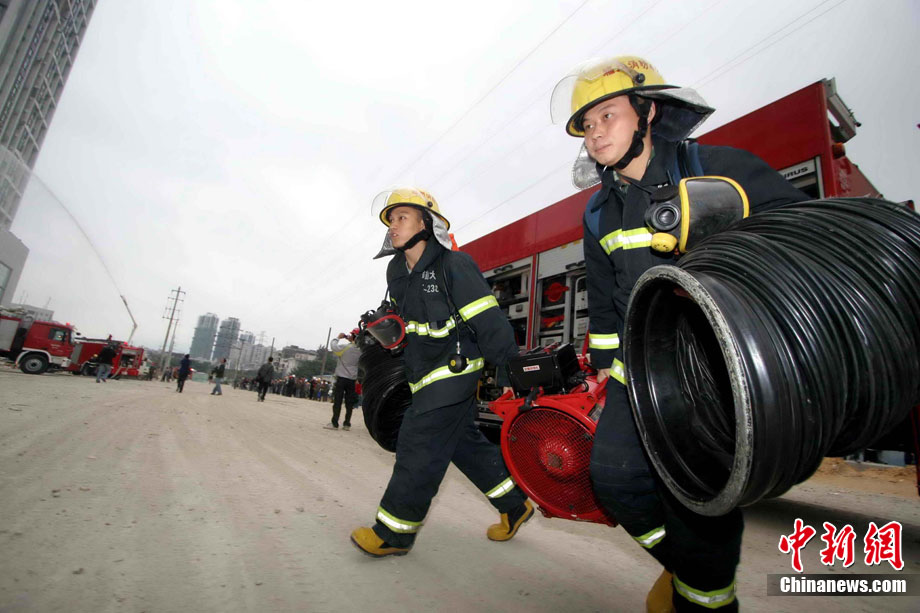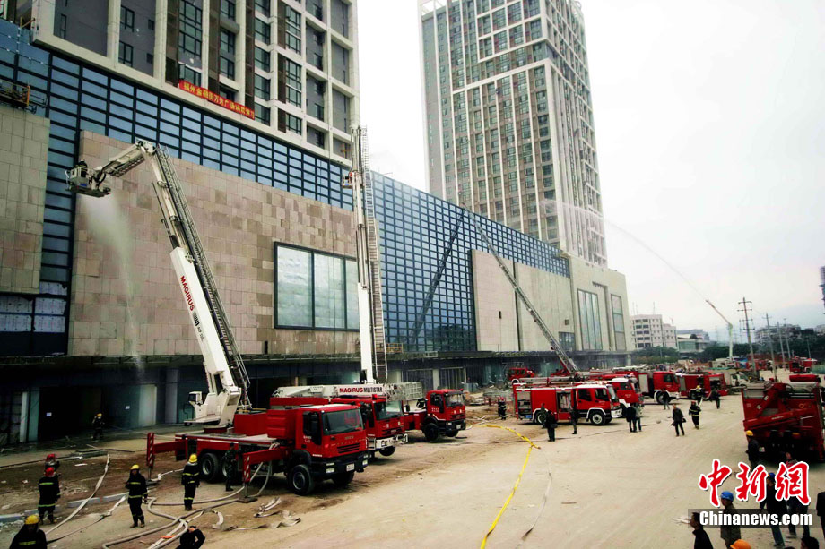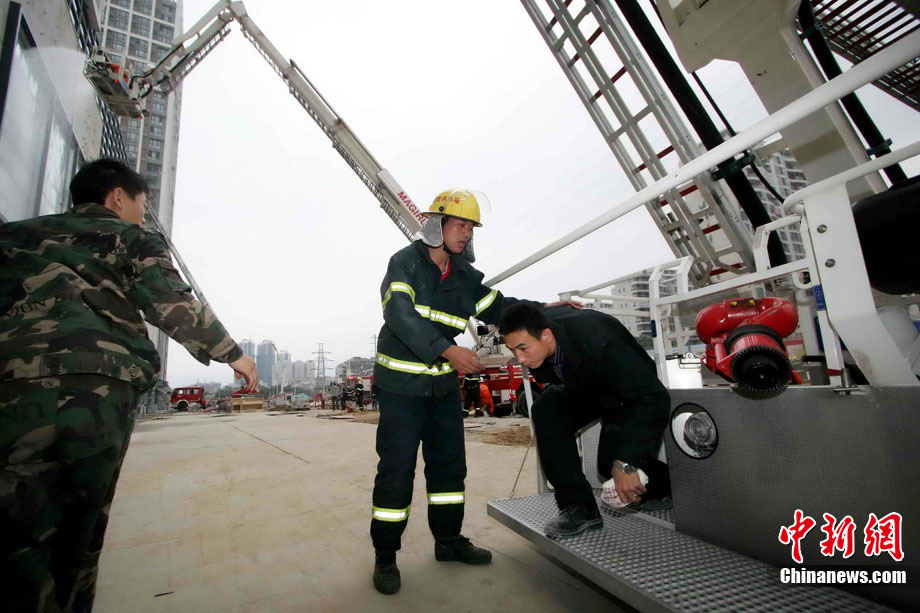 中新網(wǎng)福州11月18日電 (朱曉航 黃綠榮)為吸取“11.15”上海市靜安區(qū)膠州路在建高層教師公寓樓特大火災(zāi)事故教訓(xùn),福州18日在該市臺(tái)江區(qū)舉行了一場大型滅火救援演練。