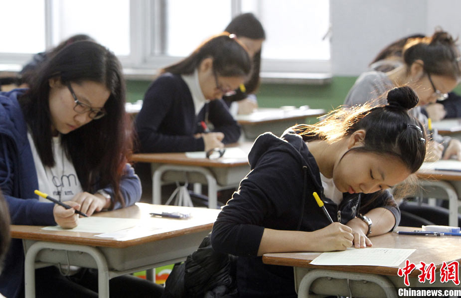 11月18日,韓國2011年度高考在82個(gè)考區(qū)的1206個(gè)考場同時(shí)舉行。