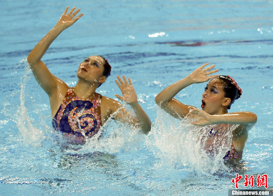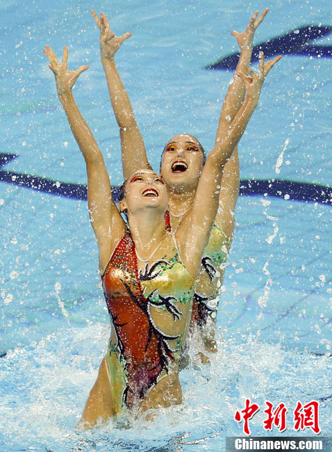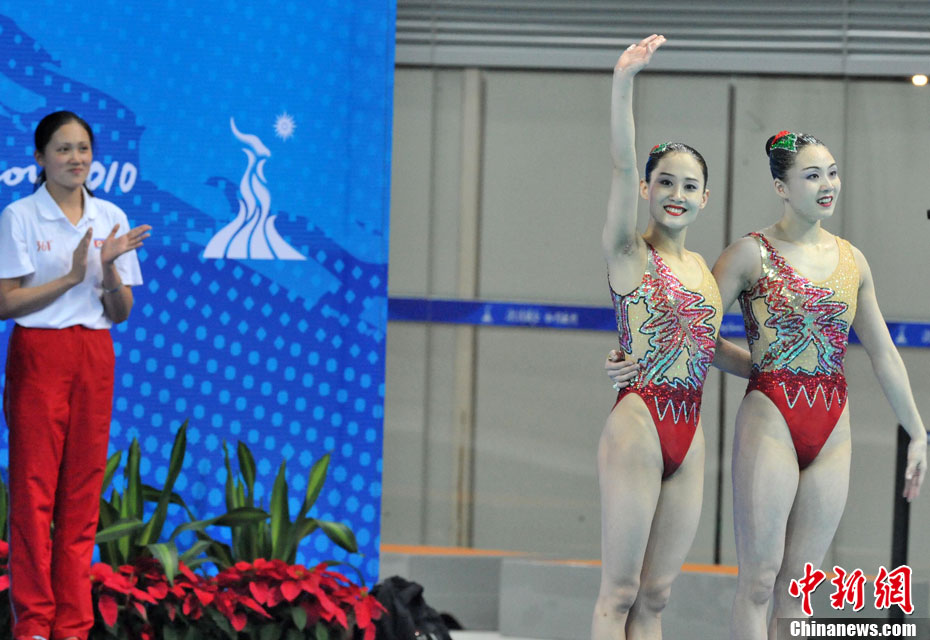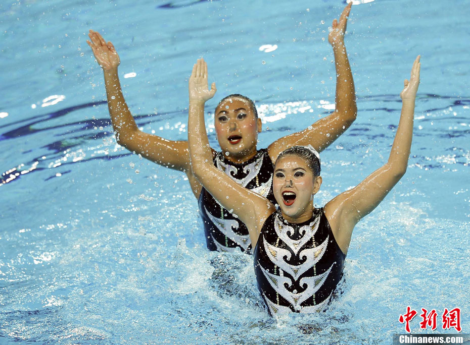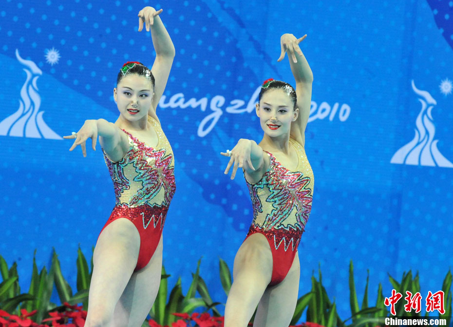 11月19日,中國花游雙人組合蔣婷婷、蔣文文亮相廣州,參加亞運會花游比賽。中新社記者 杜洋 攝