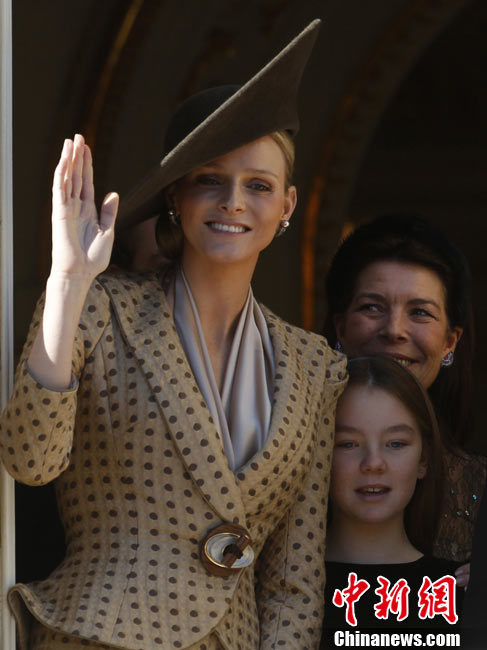 19日,摩納哥國(guó)家元首阿爾貝二世親王的準(zhǔn)王妃查倫·維特施托克(圖左)驚艷亮相摩納哥國(guó)慶慶典。她與王室成員一同出現(xiàn)在王宮觀禮臺(tái),接受民眾和游客的歡呼與祝福,當(dāng)晚她又以一身閃亮的白色禮服再次與王室成員共同亮相。