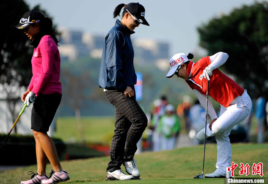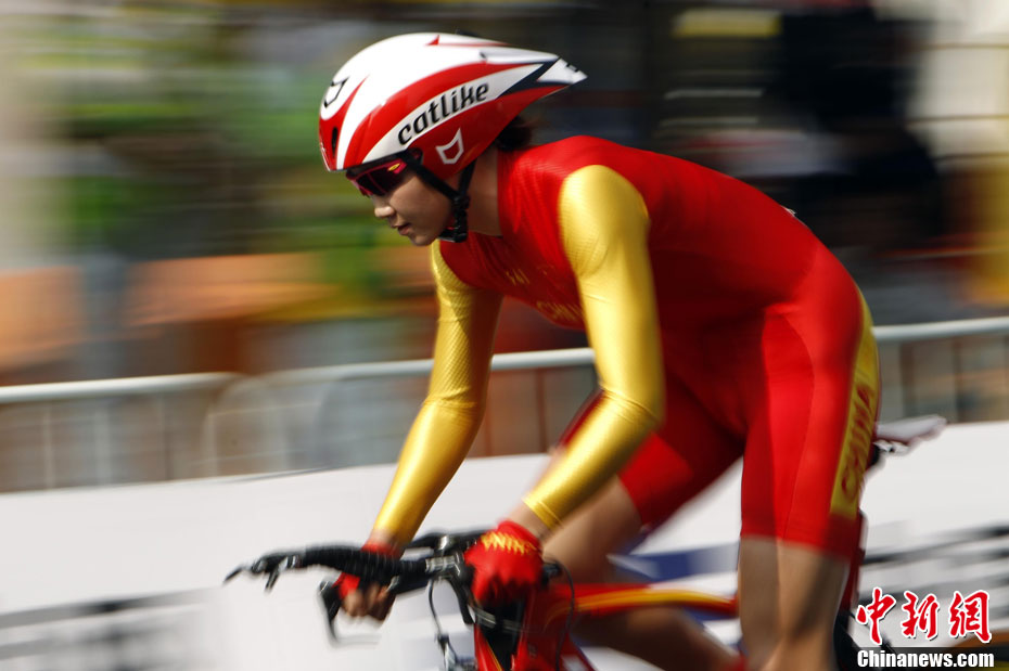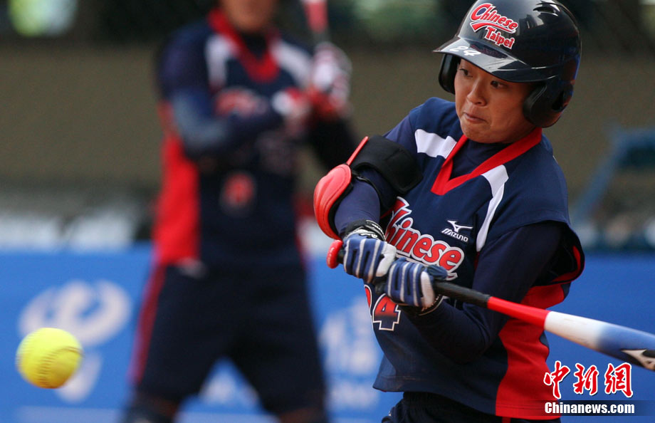 11月20日,廣州亞運會壘球預(yù)賽第4場,中華臺北隊以9比2戰(zhàn)勝菲律賓隊。中華臺北隊員林佩君揮棒擊球。 中新社記者 湯彥俊 攝