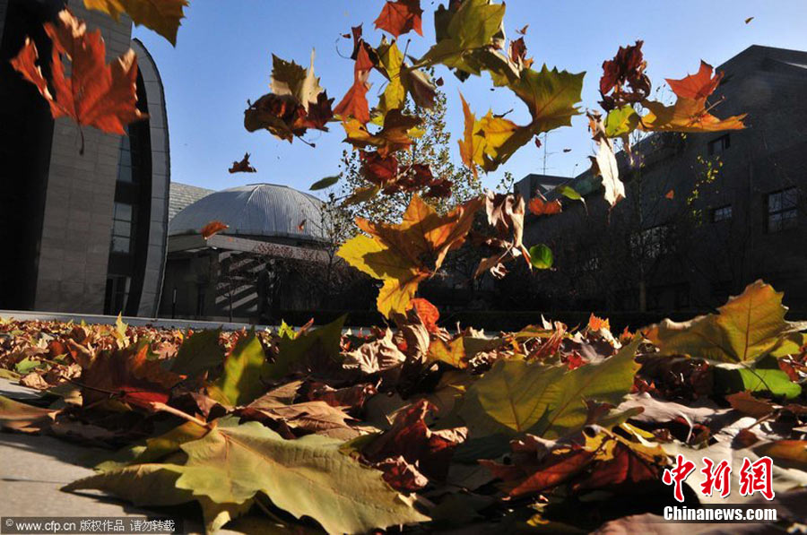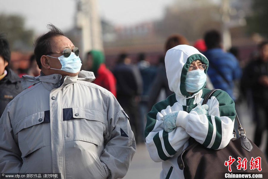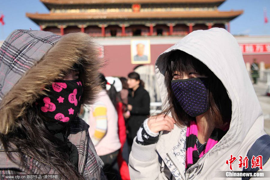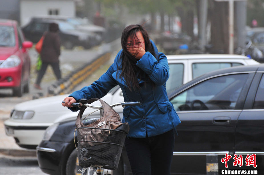 2010年11月21日,北京出現(xiàn)大風(fēng)天氣,風(fēng)力達(dá)到5-6級,風(fēng)中伴有沙塵,給行人帶來諸多不便。陳曉根 攝 圖片來源:CFP視覺中國