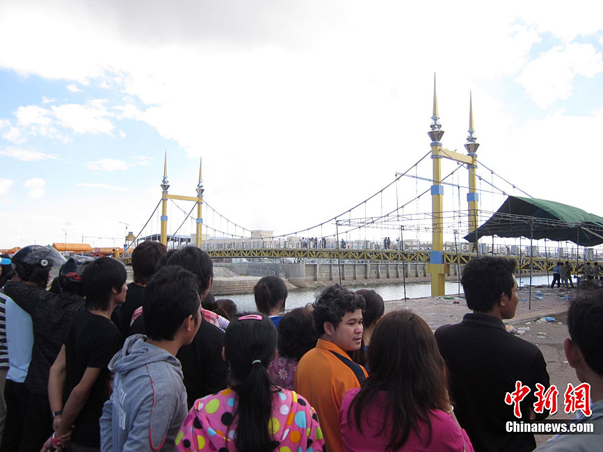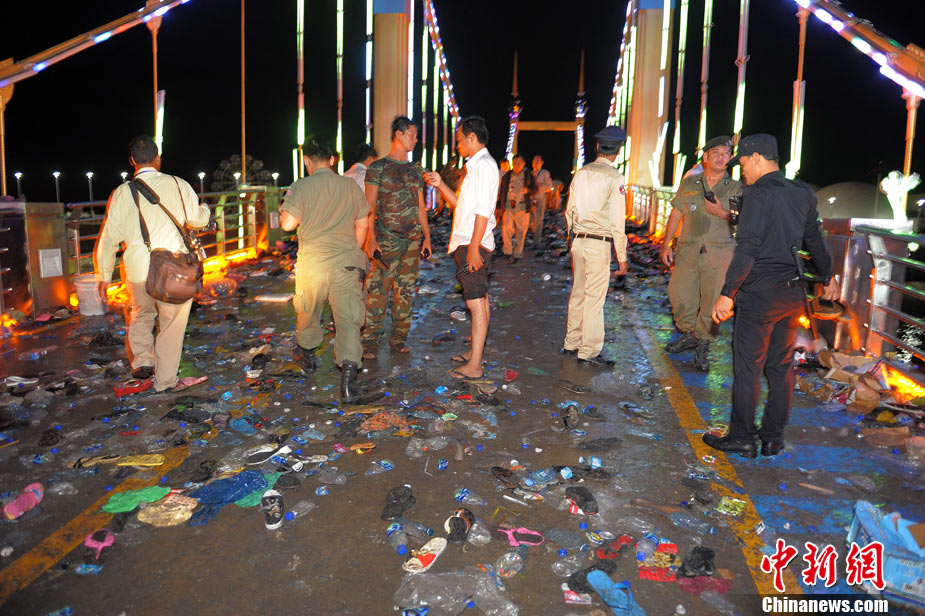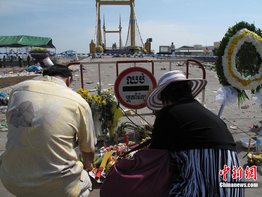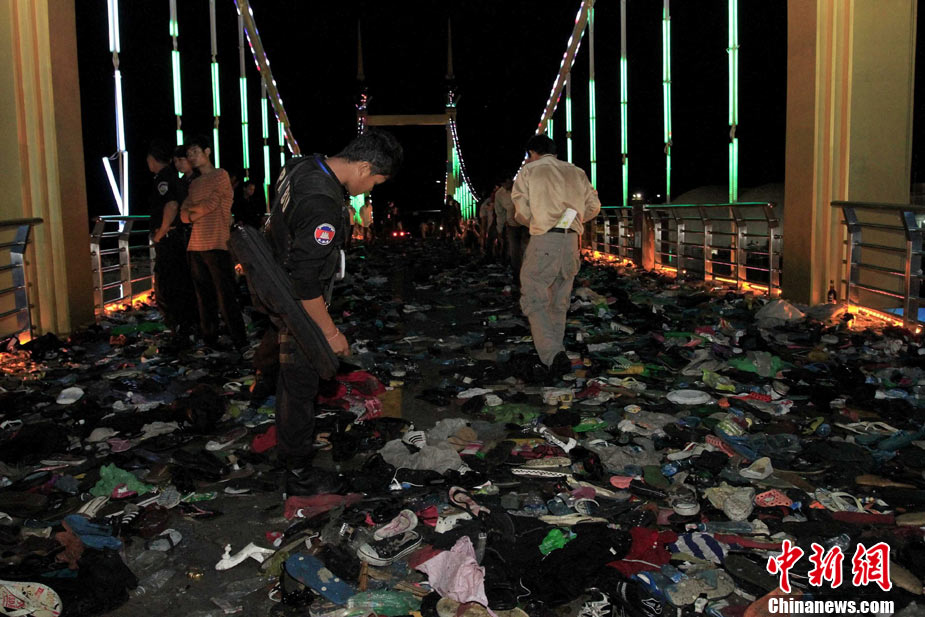 22日是柬埔寨為期三天傳統(tǒng)送水節(jié)的最后一天,全國各地約有300萬人涌向金邊觀看在王宮前的洞里薩河上舉行的龍舟大賽以及在金邊鉆石島等地的慶;顒。由于游人太多,金邊市區(qū)連接鉆石島的一座橋產(chǎn)生晃動,引起人們恐慌,導致相互擁擠踩踏。
