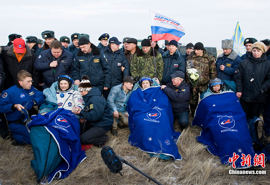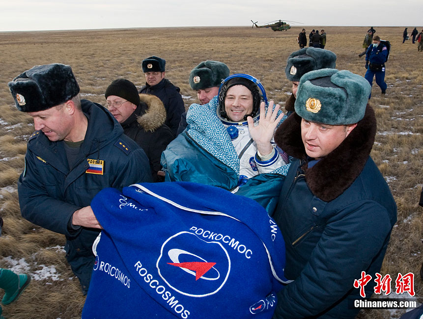 俄羅斯地面飛行控制中心當?shù)貢r間11月26日宣布,國際空間站的3名宇航員已于當日清晨乘俄“聯(lián)盟TMA-19”載人飛船安全返回地球。在國際空間站內工作了162天的俄羅斯宇航員尤爾齊欣、美國宇航員維洛克和沃克爾乘坐“聯(lián)盟TMA-19”載人飛船,平安降落在哈薩克斯坦阿爾卡雷克市以北的草原上,3名宇航員目前狀態(tài)良好。