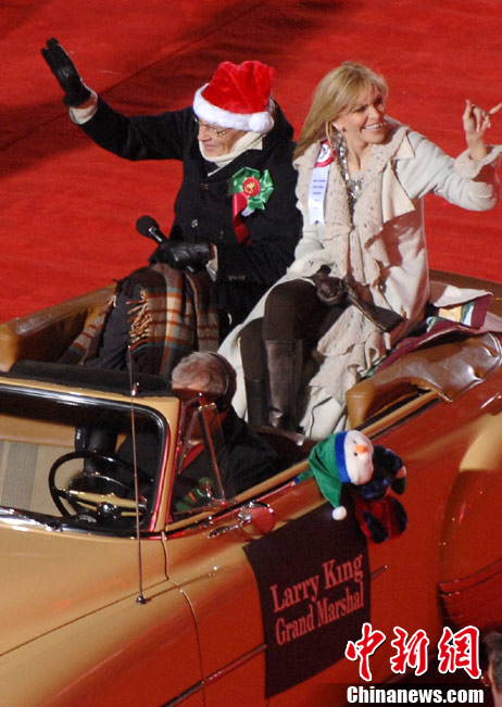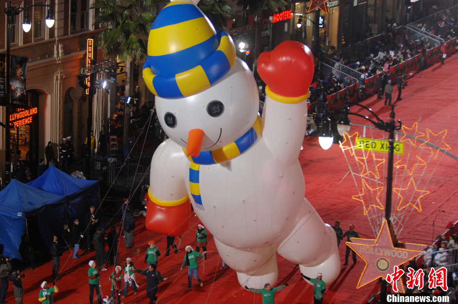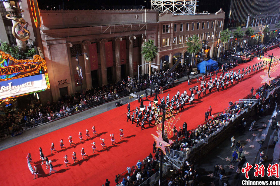 11月28日晚,一年一度的好萊塢迎圣誕大游行在好萊塢大道隆重舉行。CNN王牌主播拉里·金擔任今年游行的大禮官,在他的率領(lǐng)下,近60名好萊塢明星和14個樂隊、8個騎馬方陣、巨型充氣卡通、花車等游行隊伍依次通過紅地毯,為洛杉磯迎圣誕活動拉開大幕。好萊塢迎圣誕大游行始于1928年,至今已有80多年歷史。中新社發(fā) 張煒 攝