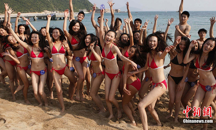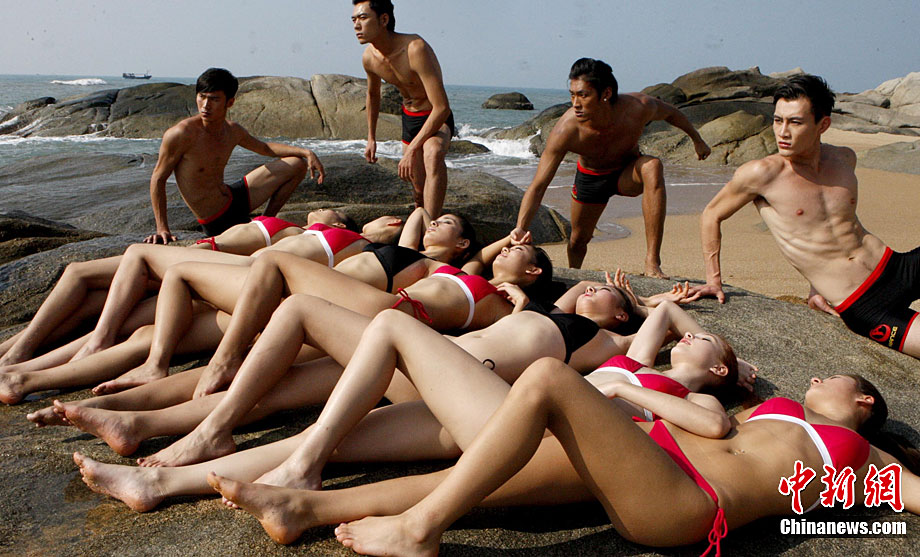 11月29日,正在海南三亞參加“第18屆新絲路中國模特大賽總決賽”的模特選手在三亞海邊及景區(qū)拍攝外景。圖為參賽眾佳麗上演泳裝秀。 中新社記者 錢興強(qiáng) 攝